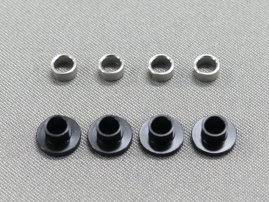 金属製と樹脂製の2種類の素材のセンタリングカラーが各4個ずつ同梱されています。サーボ耳のスキマを埋める事が可能です。