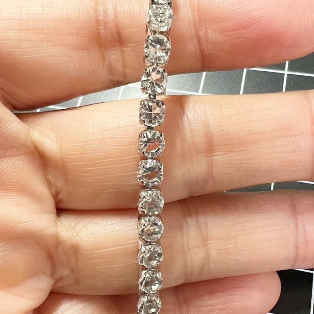 キラキラと輝くクリスタルストーンのラインがキレイなブレスレットです。