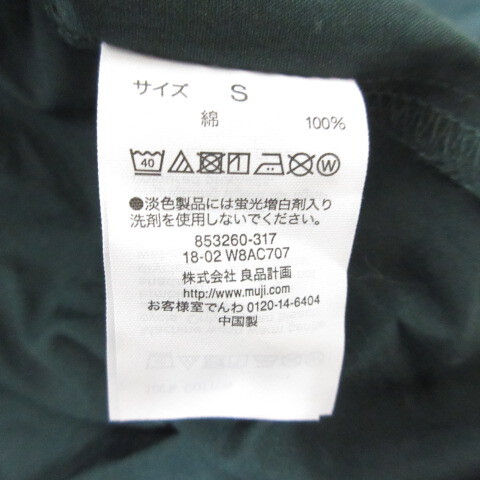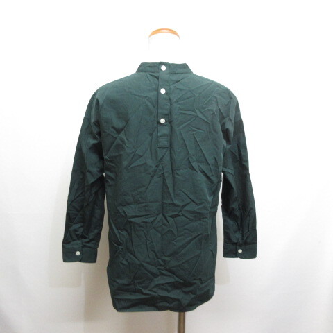 無印良品 良品計画 バンドカラー 長袖 コットン プルオーバー シャツ カットソー S 深緑 ダークグリーン レディース