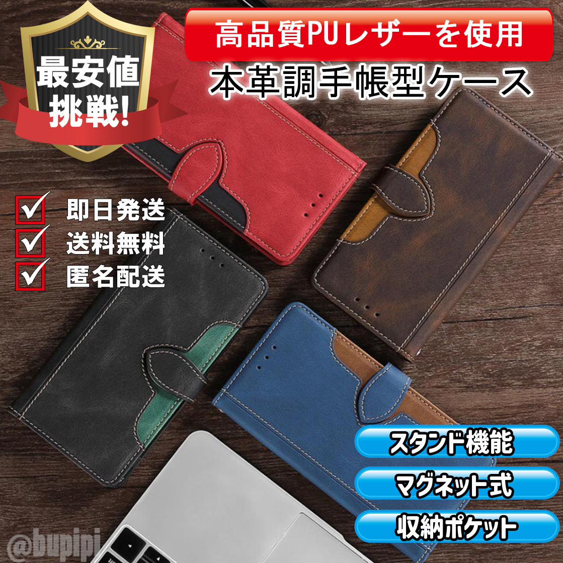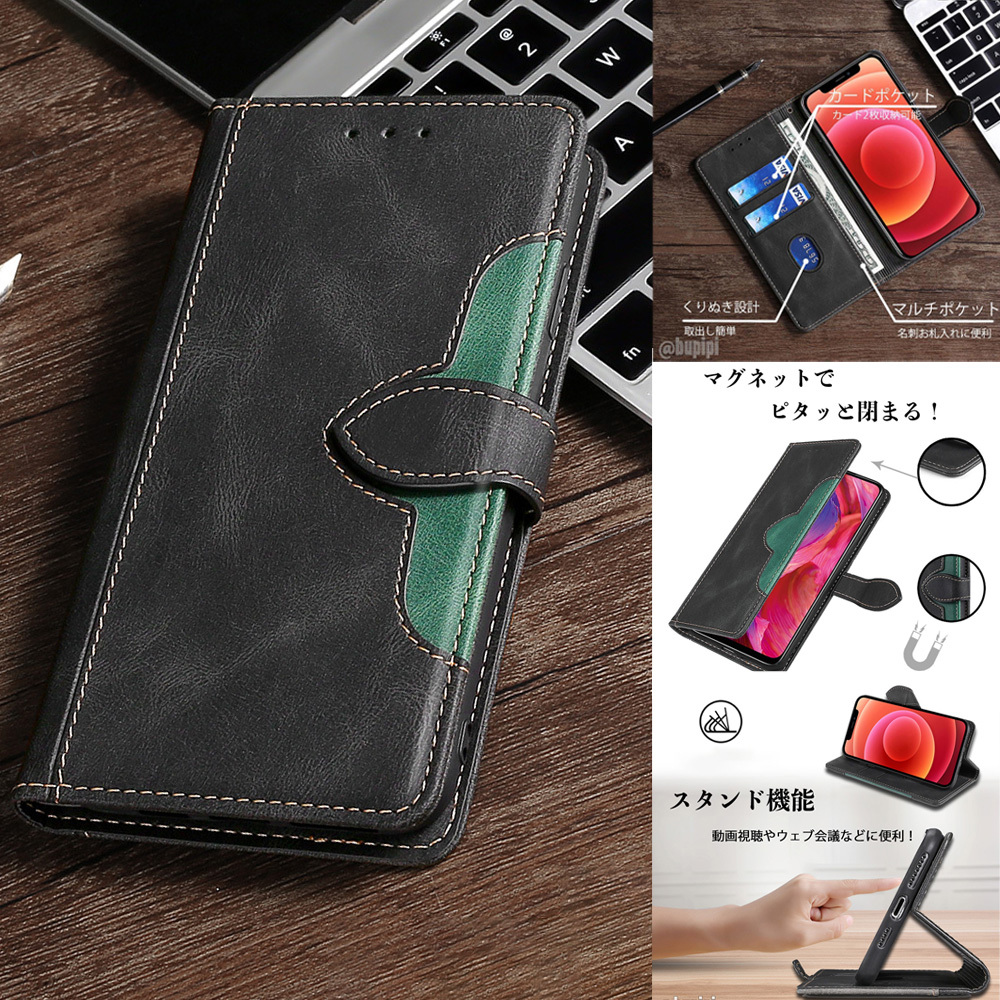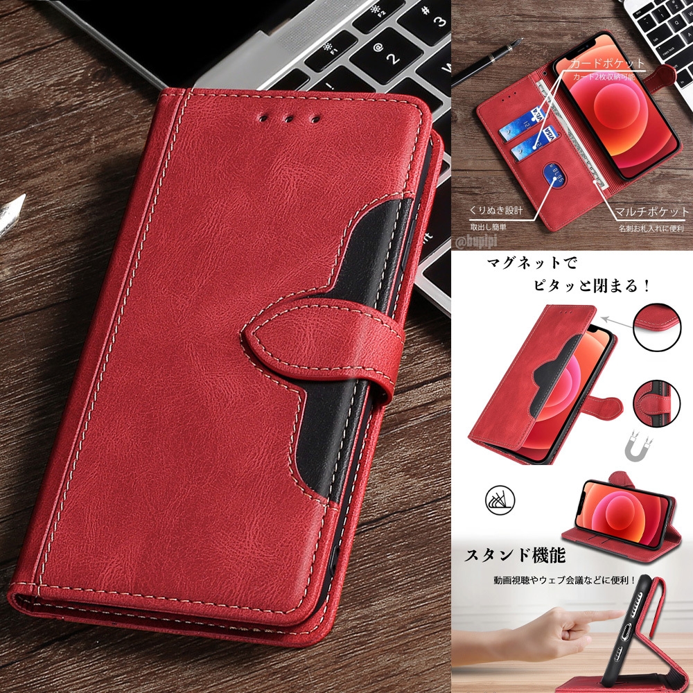 ■カラー: [黒][茶][青][赤] 写真順(2枚目から) ■カードポケット:2 ■お札ポケット:1 ■素材: PUレザー、TPU ■カメラレンズ保護構造 ■スタンド機能あり 角度調整可 ■マグネット開閉式 ■衝撃吸収 ■ホルダー穴付き ■ワイヤレス充電可(厚めのケースのため、位置合わせが必要となります。) ※クレジットカードやスマートフォンは磁気の影響を受けやすいため、マグネット内蔵式は設計上、磁力を弱めにしております。しっかりと閉めたい方には、ベルト式または側面フラップ式をお勧めいたします。 | ||||||||||||||