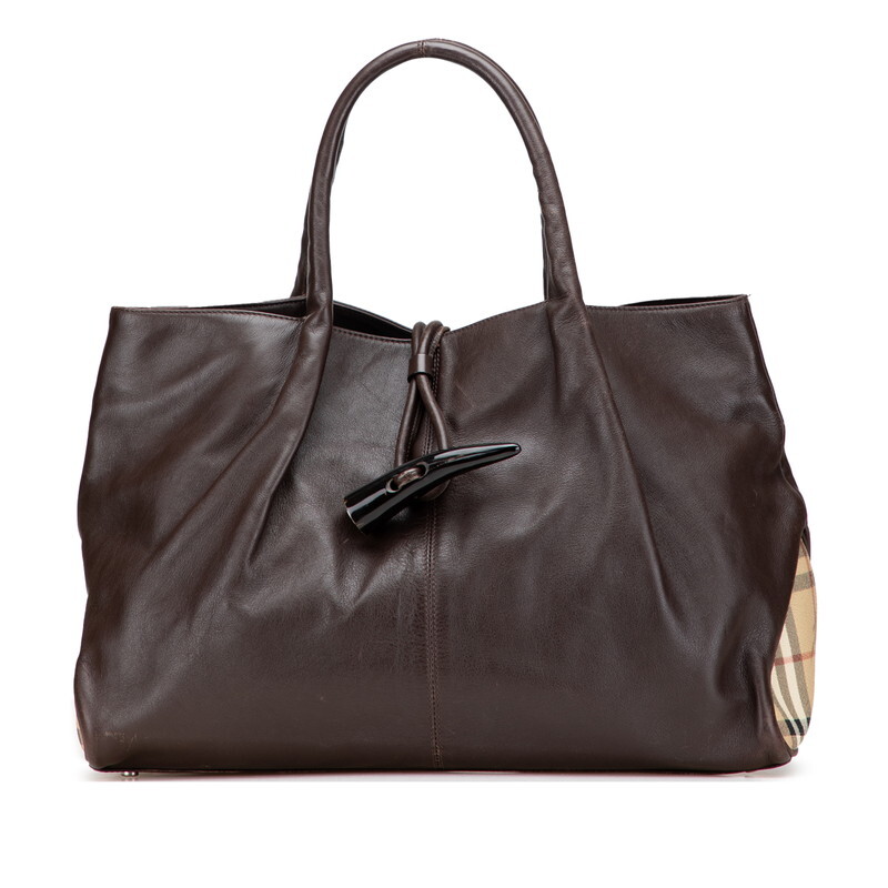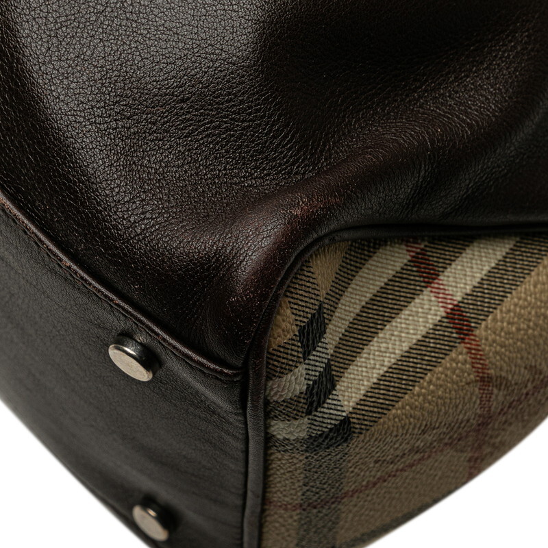 バーバリー ノバチェック シャドーホース トートバッグ ハンドバッグ ブラウン ベージュ レザー PVC レディース BURBERRY 【中古】