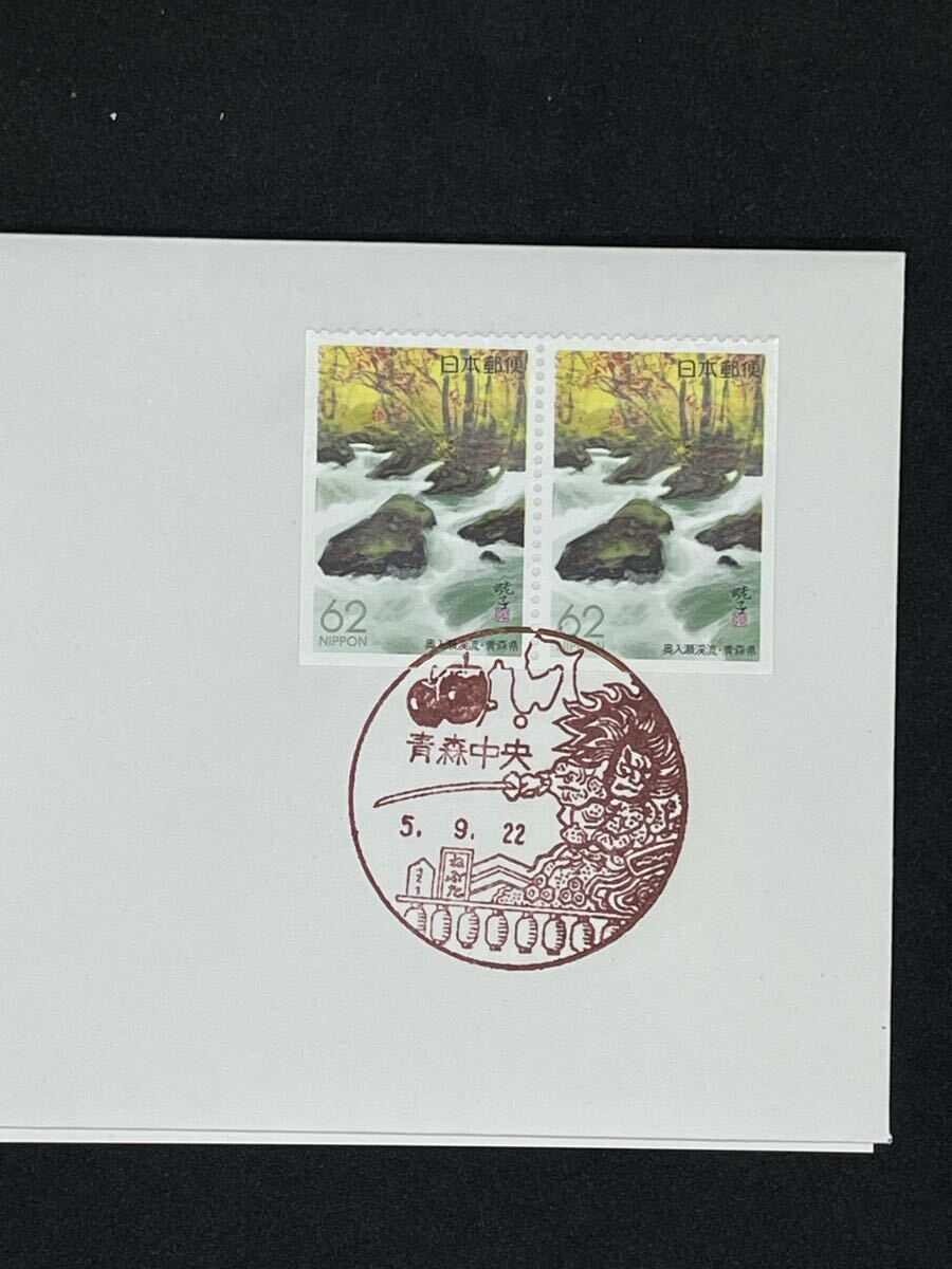 62円の2枚貼り 青森中央の風景印の単消し NCC版 初日カバー