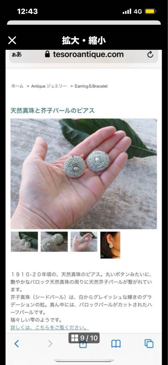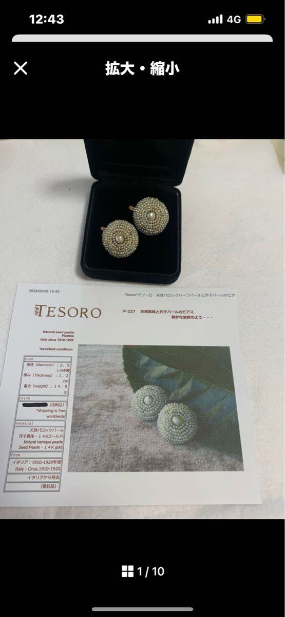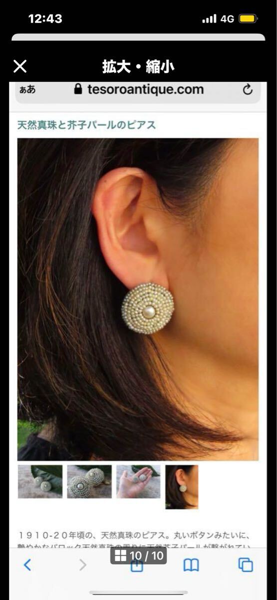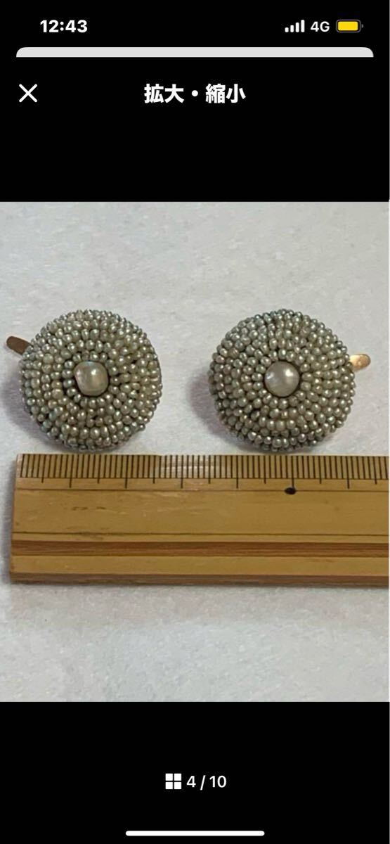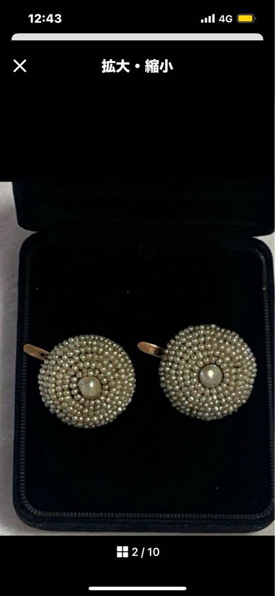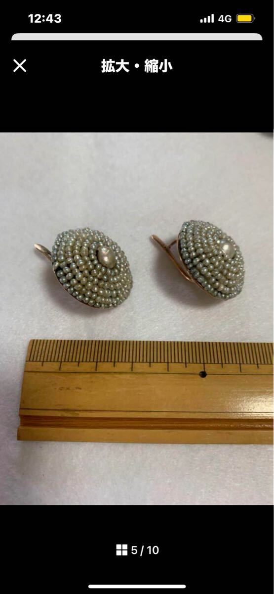 イタリアから郵送した100年前の天然真珠と芥子パールのピアス。