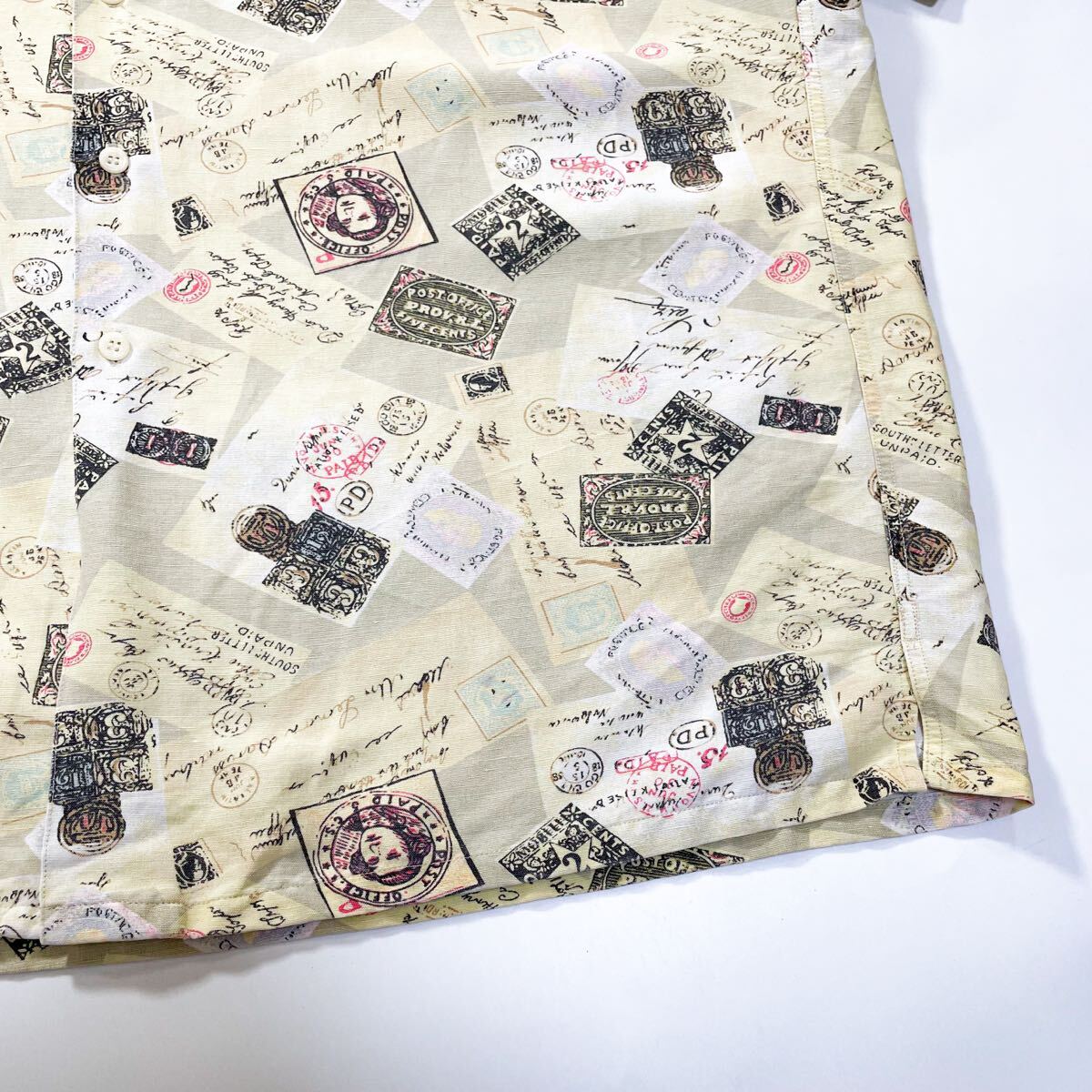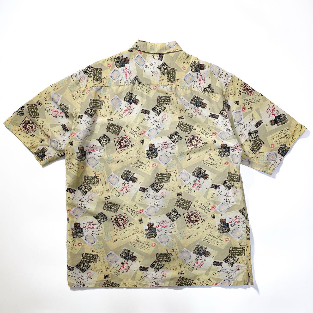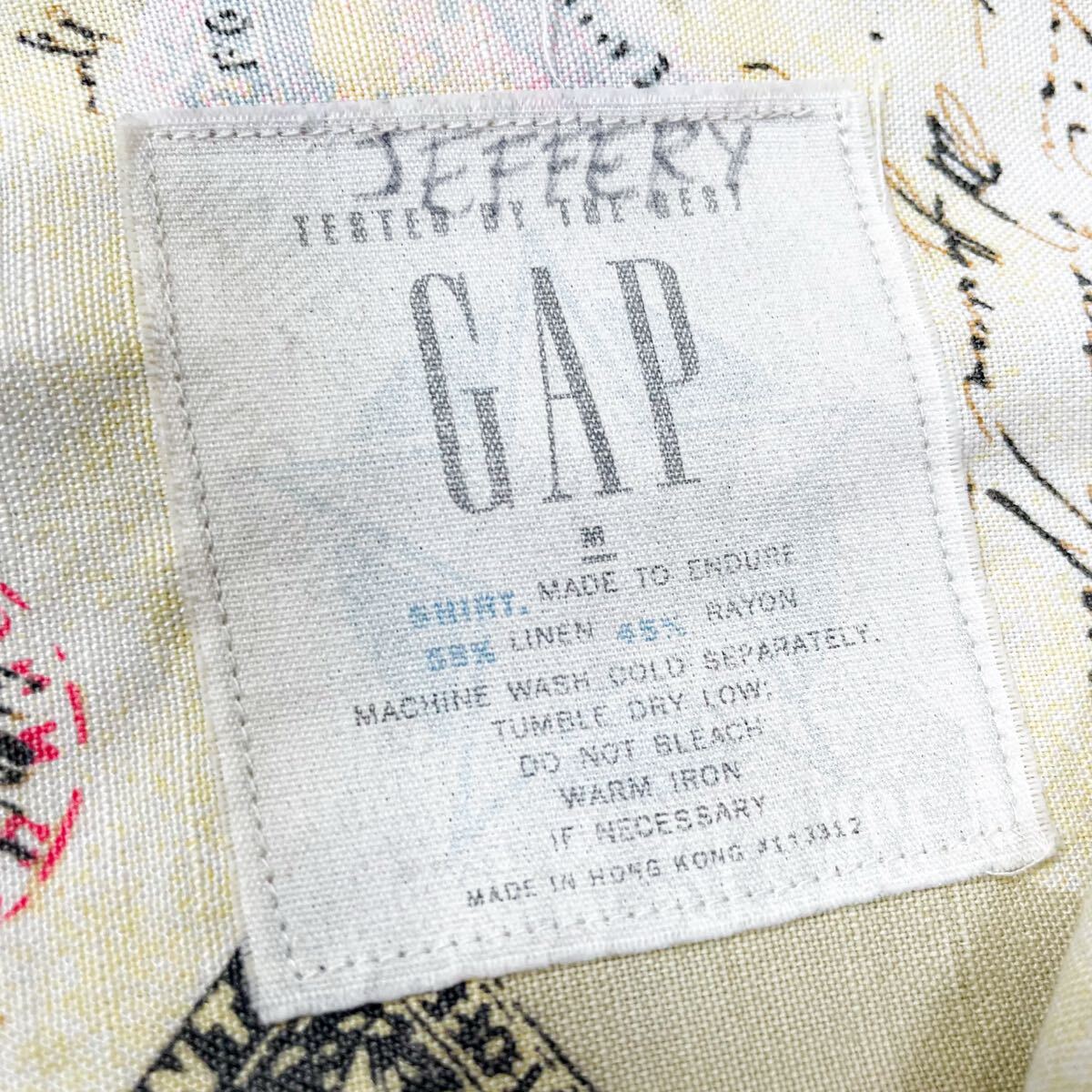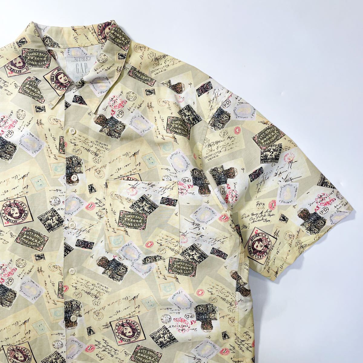 90s 80s GAP ギャップ リネン レーヨン 総柄 切手 オープンカラーシャツ 半袖 アロハ ビンテージ usa M デカタグ レインスプーナー J.crew
