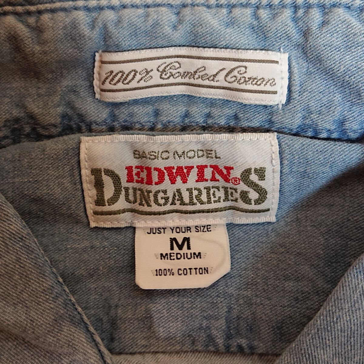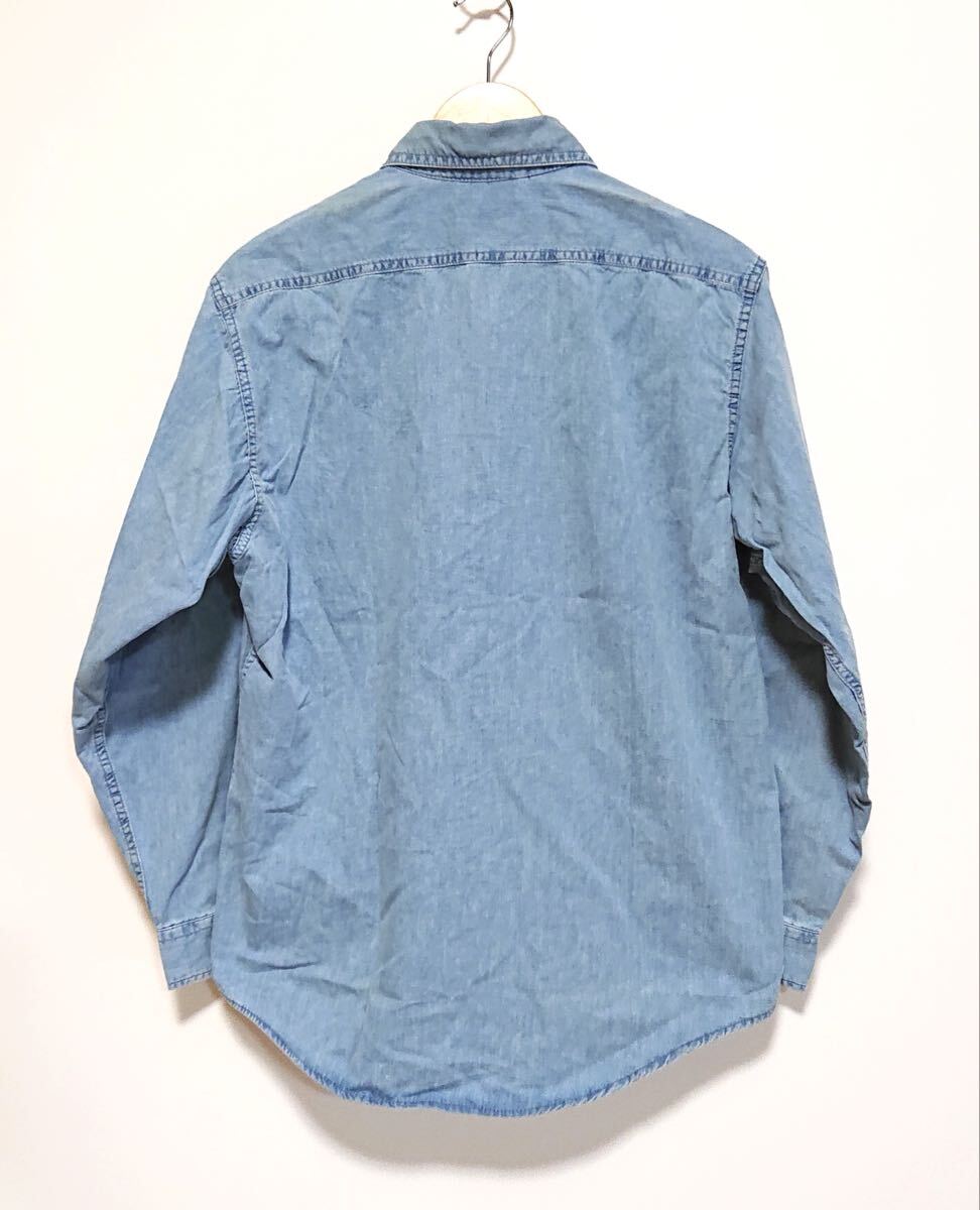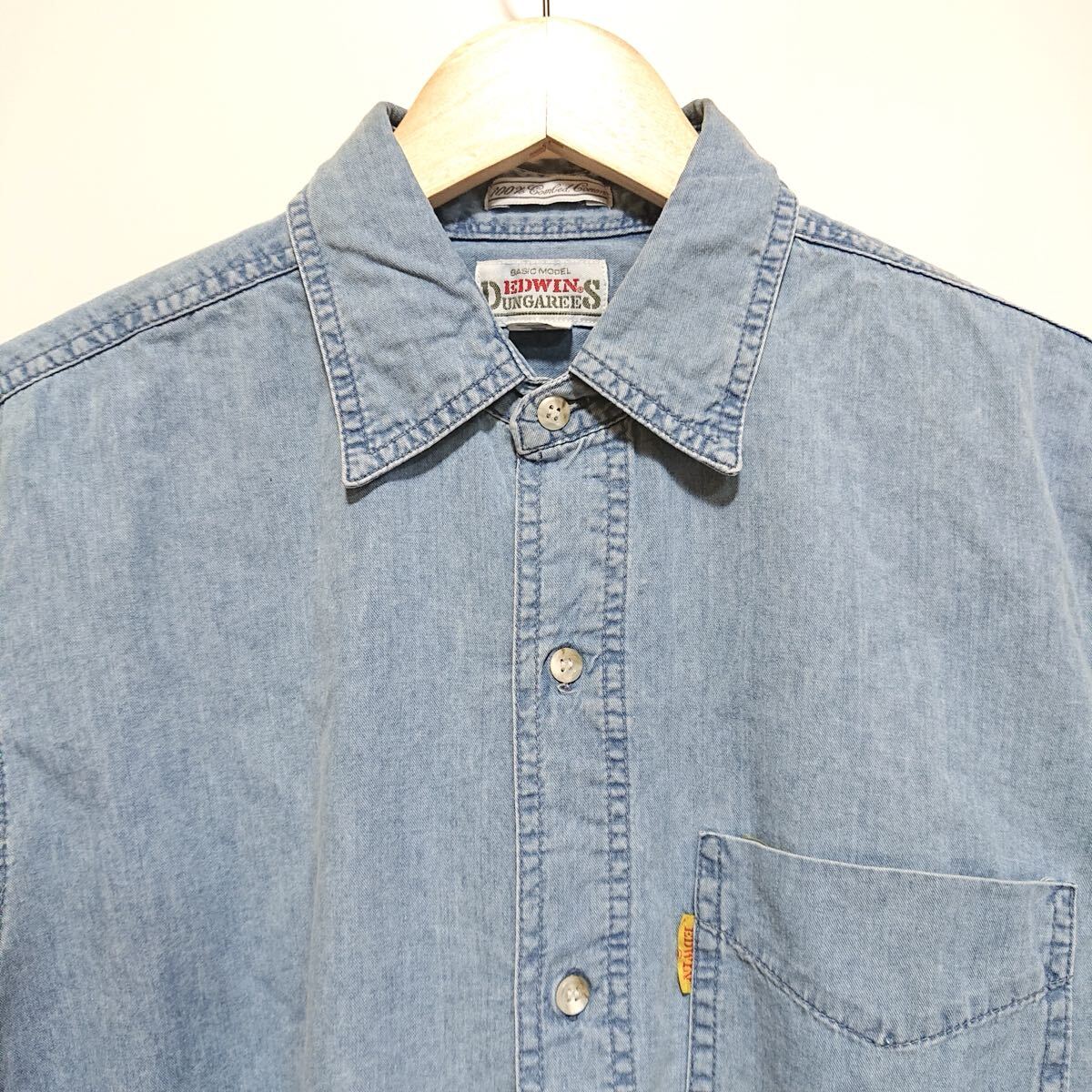 h3830gg EDWIN(エドウイン)DUNGAREES サイズM 長袖デニムシャツ ブルー メンズ カジュアル 着まわしコーデ シンプル おしゃれ 綿100% 古着