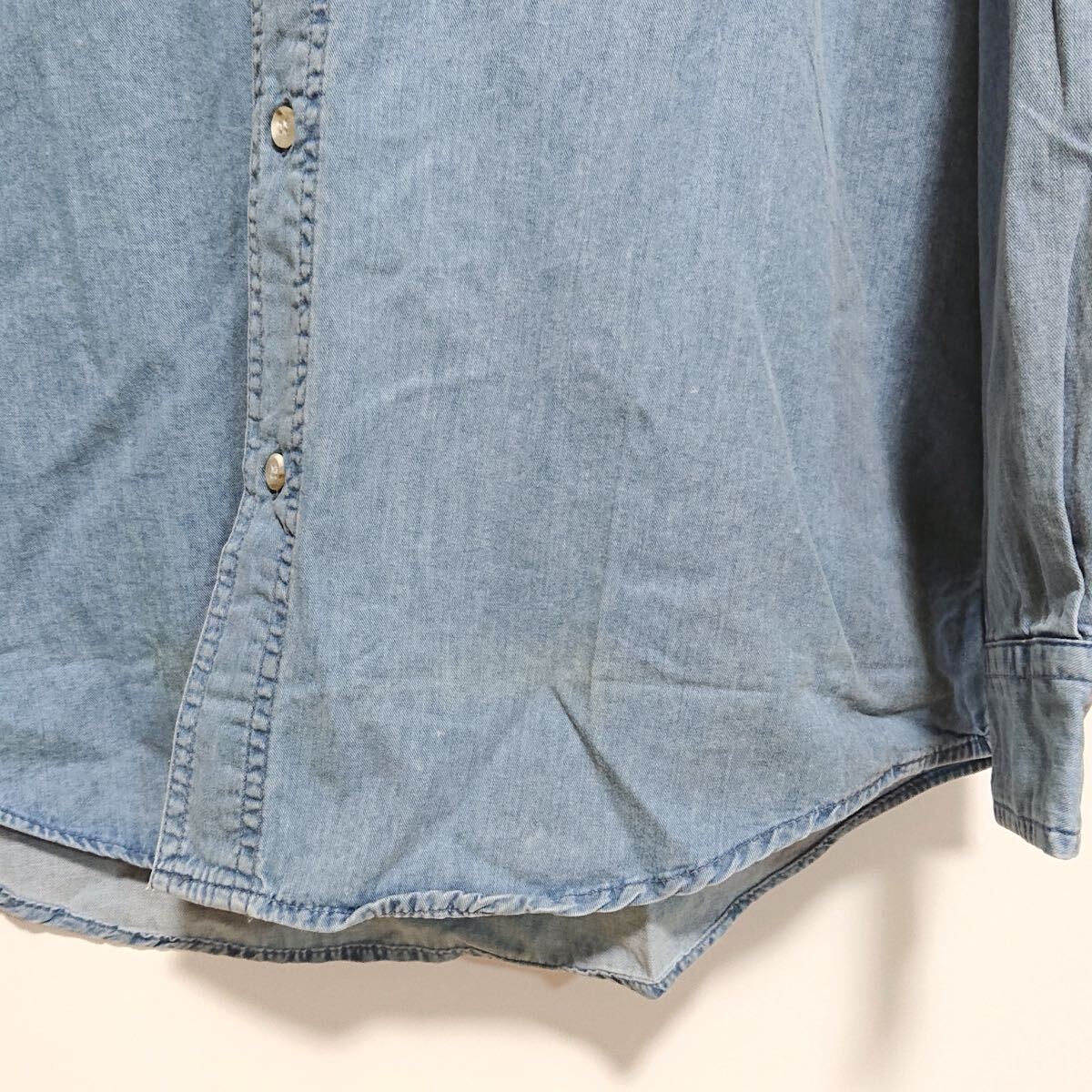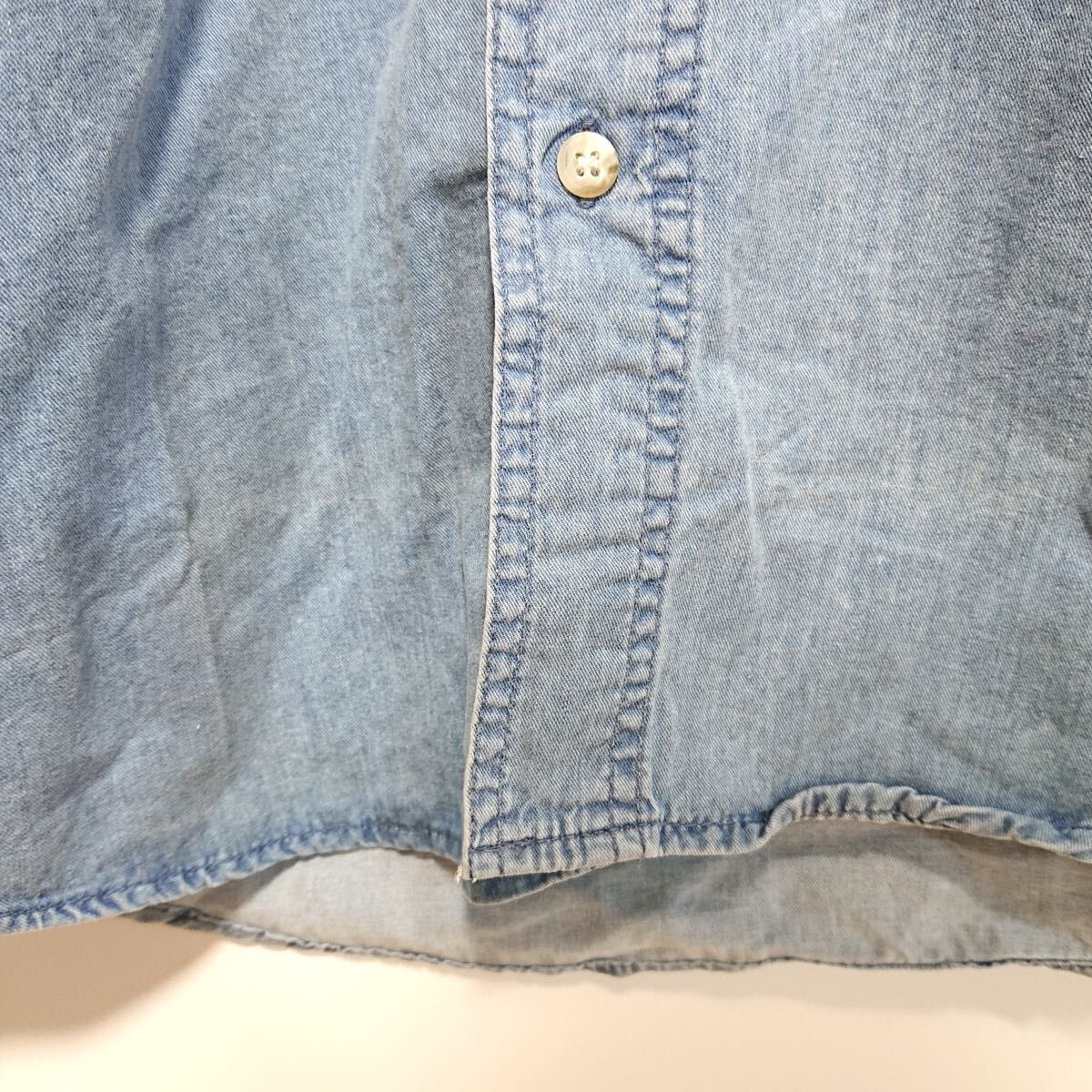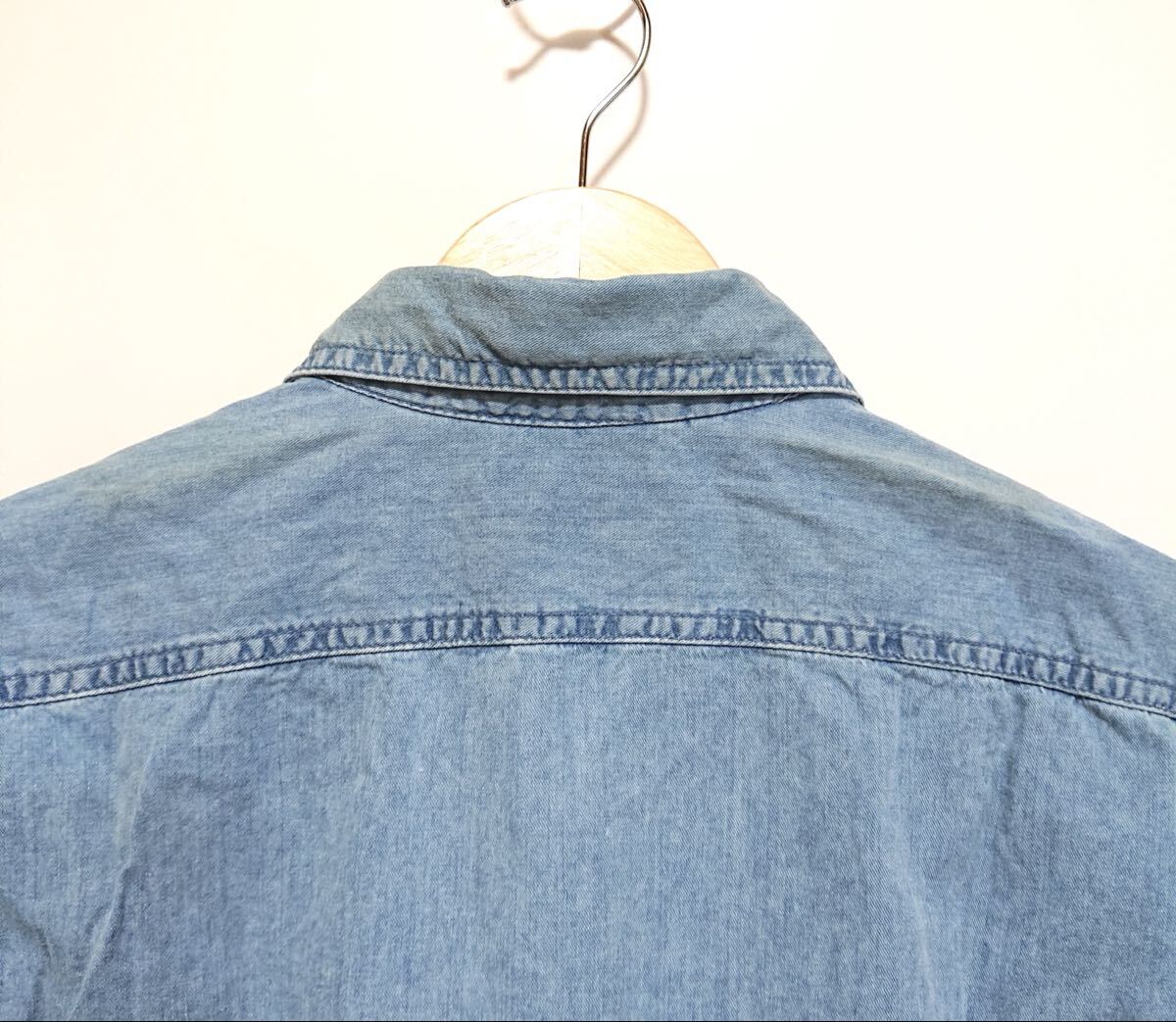 h3830gg EDWIN(エドウイン)DUNGAREES サイズM 長袖デニムシャツ ブルー メンズ カジュアル 着まわしコーデ シンプル おしゃれ 綿100% 古着