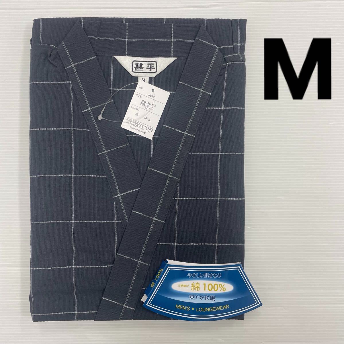 新品64342 Mサイズ 紳士甚平じんべい ダークグレーチェック 綿100% 天然素材 メンズ男性 パジャマ 家着  ルームウエア お祭り
