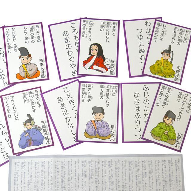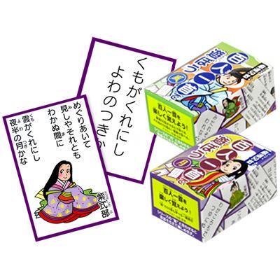 百人一首を楽しく覚えよう厳選50首がかるたで学べます月・風を合わせると百首揃えて遊べます読み札・取り札:各50枚1枚のサイズ(約):縦75×横50mm箱サイズ(約):7.7×5.2×4.5cm材質:紙