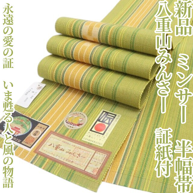 tomihisa 新品 八重山みんさー ミンサー 綿 夏着物“永遠の愛の証…いま甦る人と風の物語”浴衣 証紙付 半幅帯 6460