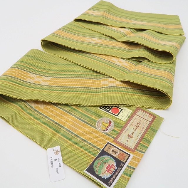 古くから“永遠の愛の証”として受け継がれる沖縄八重山地方の伝統工芸“ミンサー織”、先人の想いが込められた八重山みんさー/証紙付の“半幅帯”でございます。