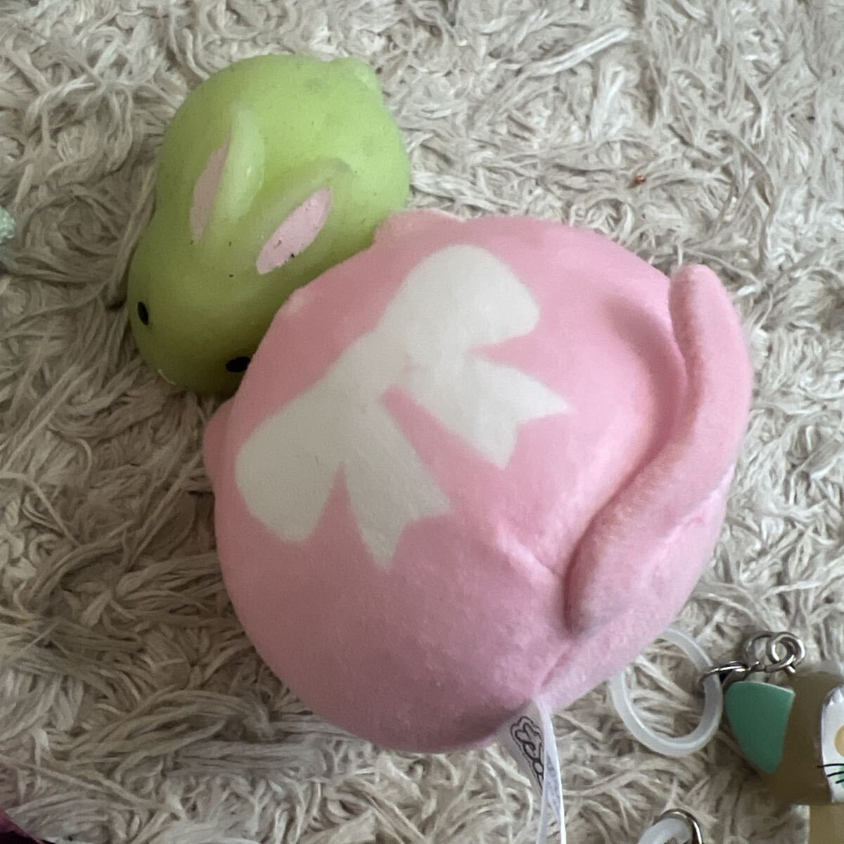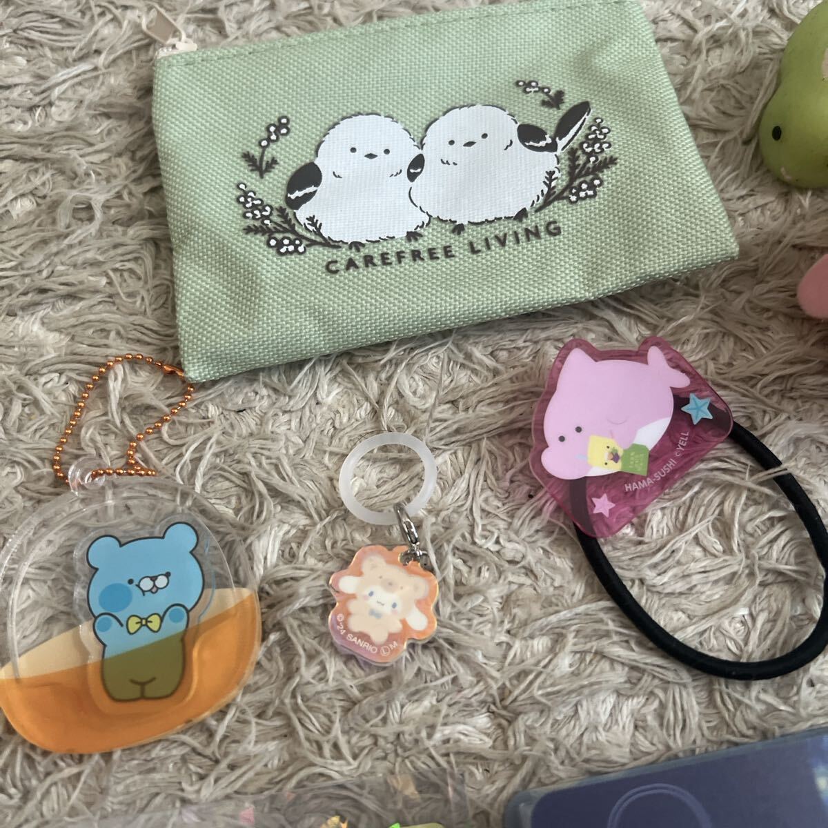 ●緑うさぎスクイーズ→全体的にほこり付着あり。●サンリオシナモンロールチャーム