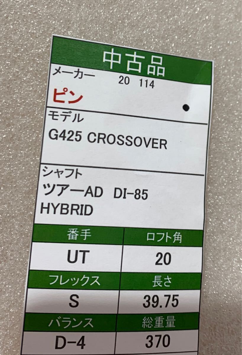 【即決価格】【アイアン型UT】レフティ/ピン/G425 CROSSOVER/ツアーAD DI-85 HYBRID/20度/FLEX S/カバー無し