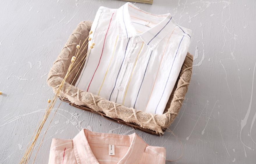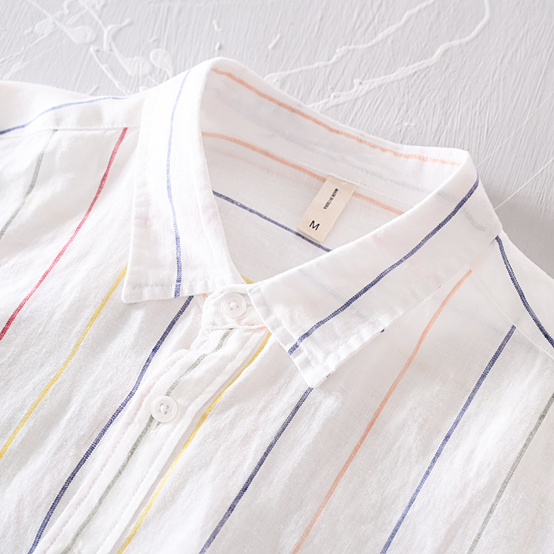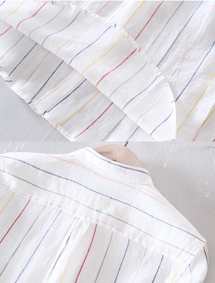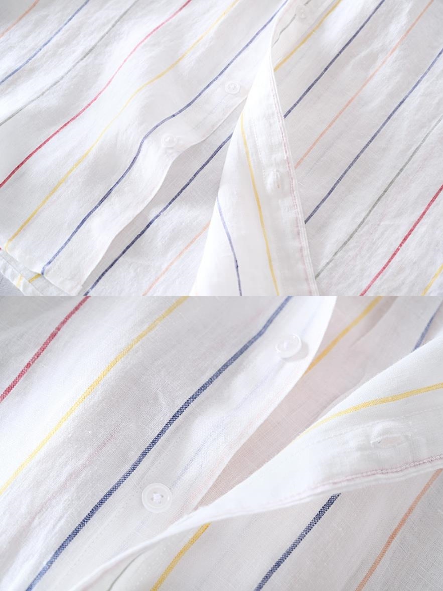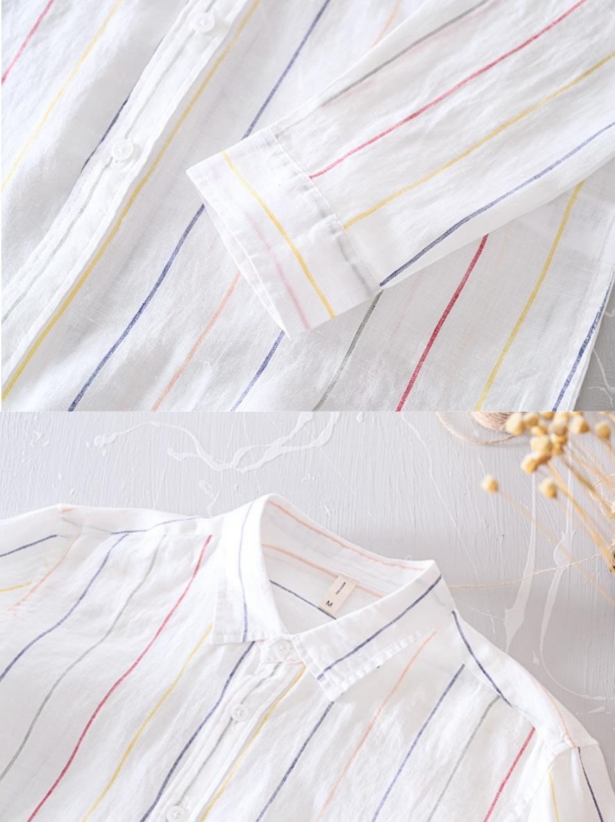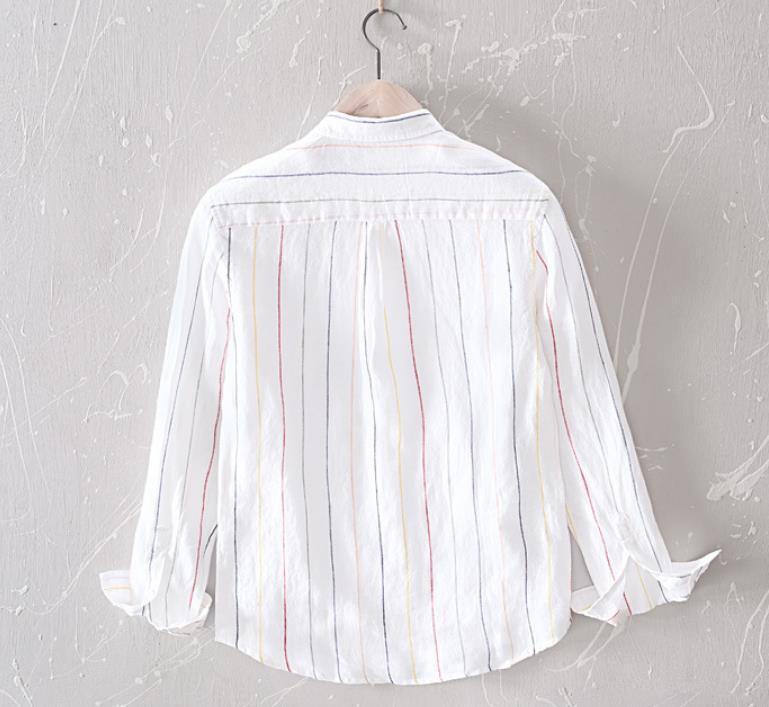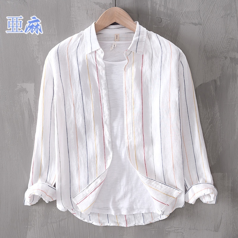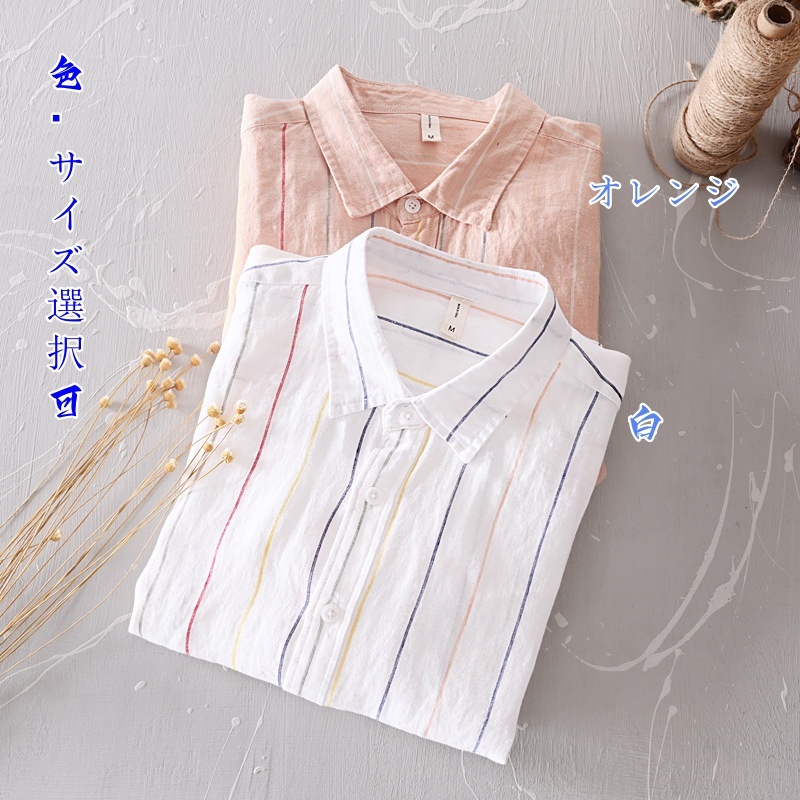 亜麻 長袖シャツ 海シャツ シャツ 新品★未使用 メンズ 亜麻:100% カジュアルシャツ トップス ストライプ【L523】白 L