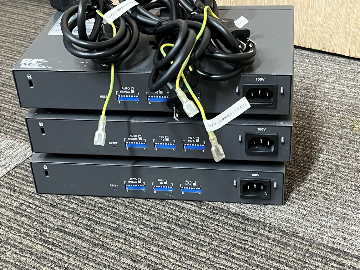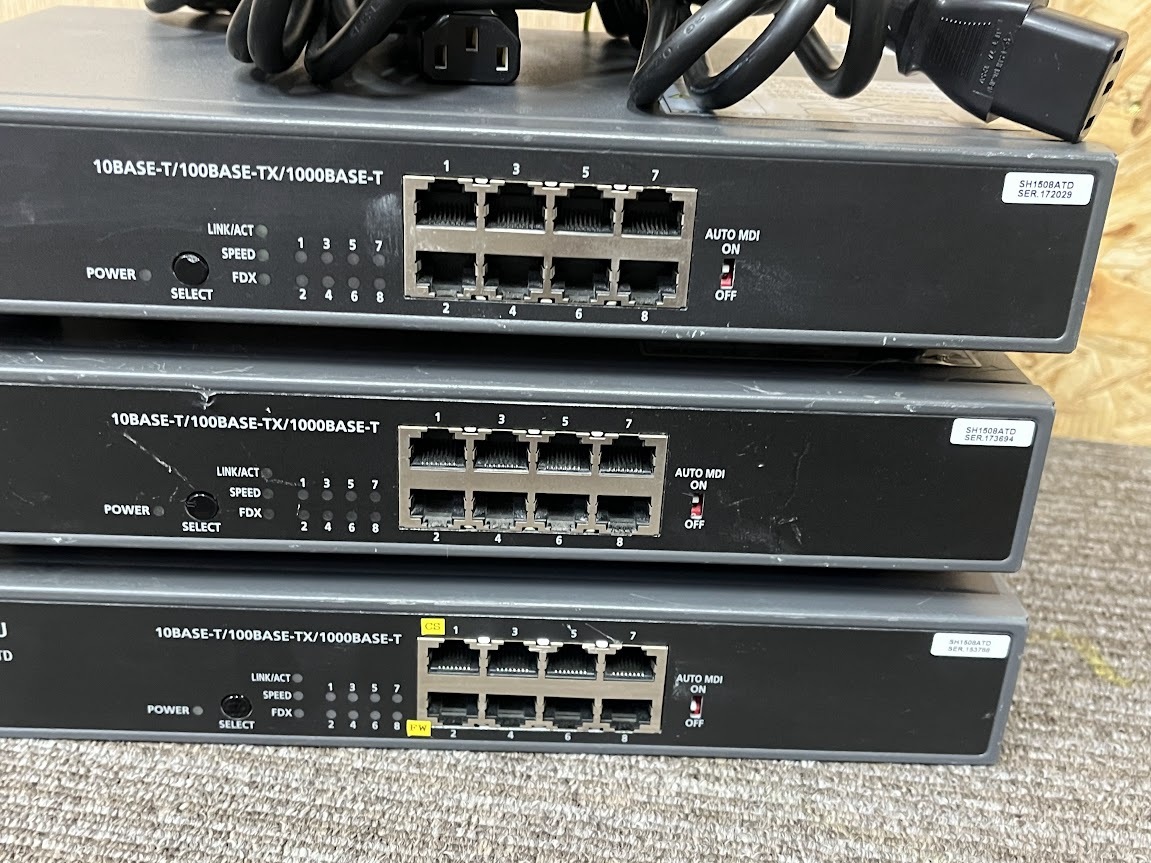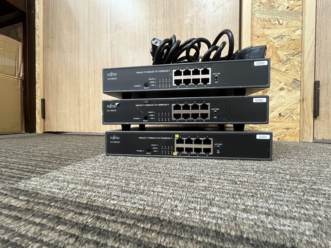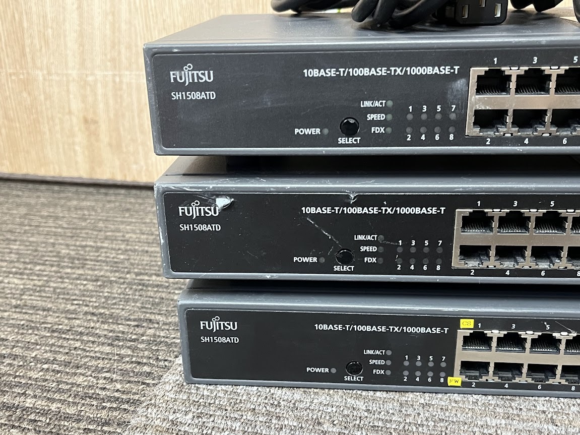ご覧いただきありがとうございます.。 自己紹介、商品説明、注意事項をお読みの上ご落札ください。 ●FUJITSU ギガビットイーサ対応スイッチングハブ SH1508ATD 3個セット 動作確認済みです。 簡易清掃は行っておりますが、中古品につき多少の使用感や傷などありません。 使用方法などのサポートはできかねますのでご了承ください。 付属品は写真にあるものがすべてです。ご確認の上ご入札ください。 商品に不具合などがあった際は迅速に対応させていただきますので、お手数ですが取引メッセージよりご連絡ください。 対応につきましては、下記の注意事項も併せてご参照ください。 | |||
