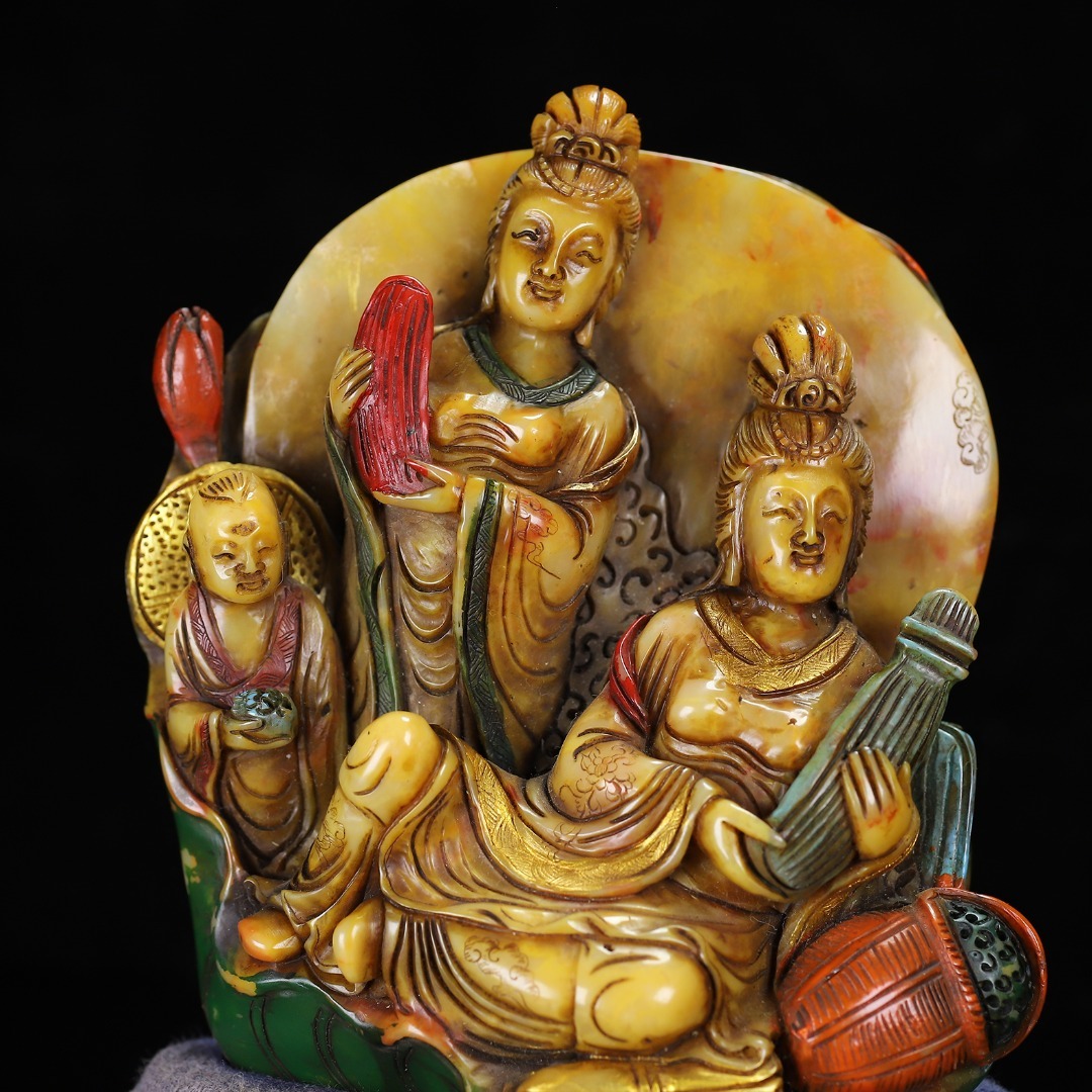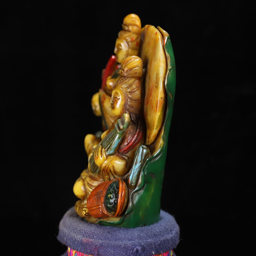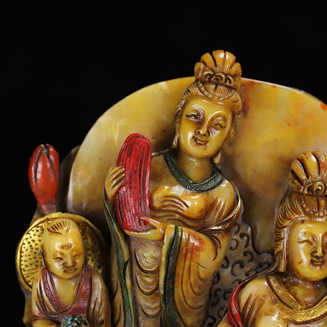 *珍品旧蔵* 【清代篆刻家 楊玉旋】寿山石 彩色観音の置物 天然石 手彫 篆刻 極細工 唐物 中国古玩 骨董品 古美味 H47