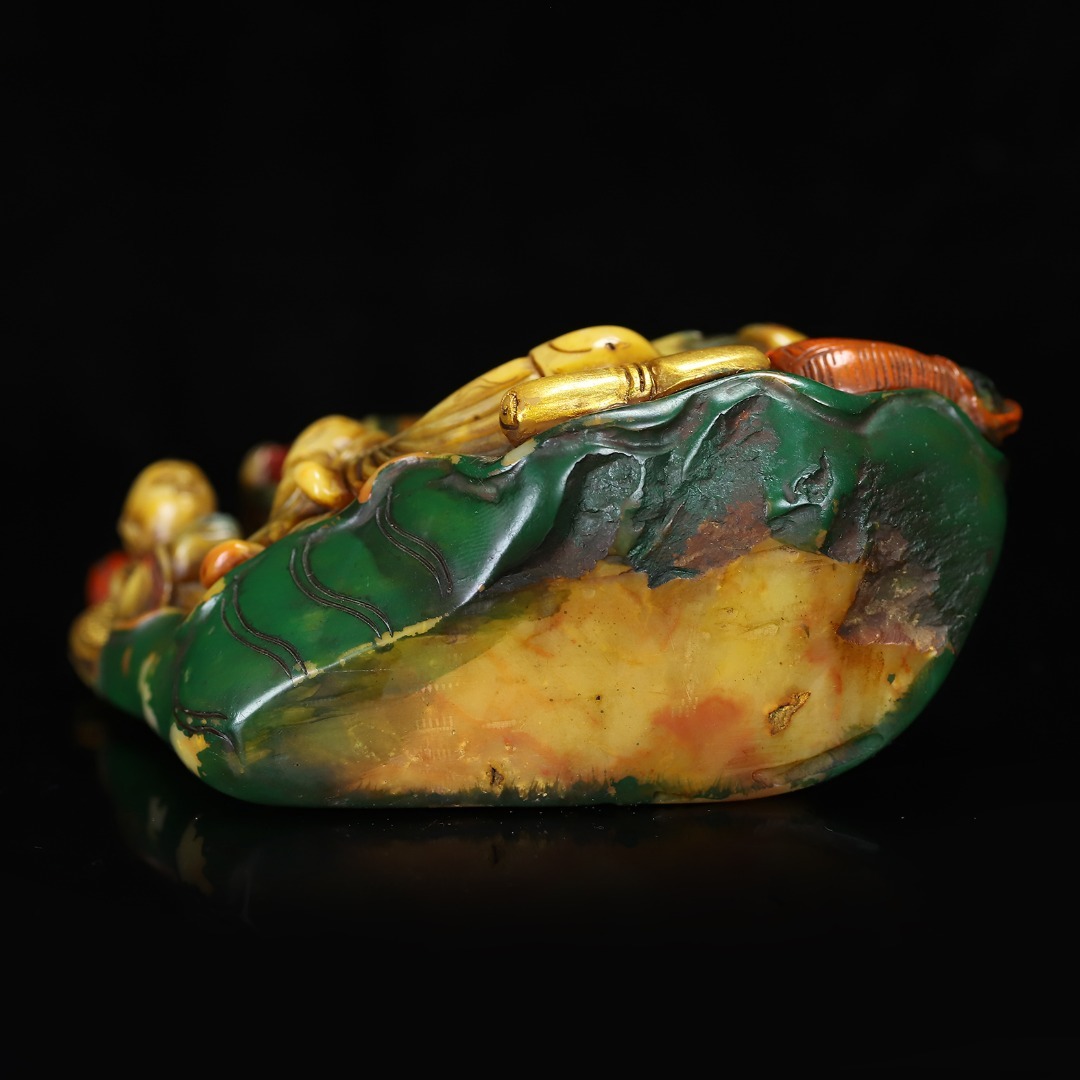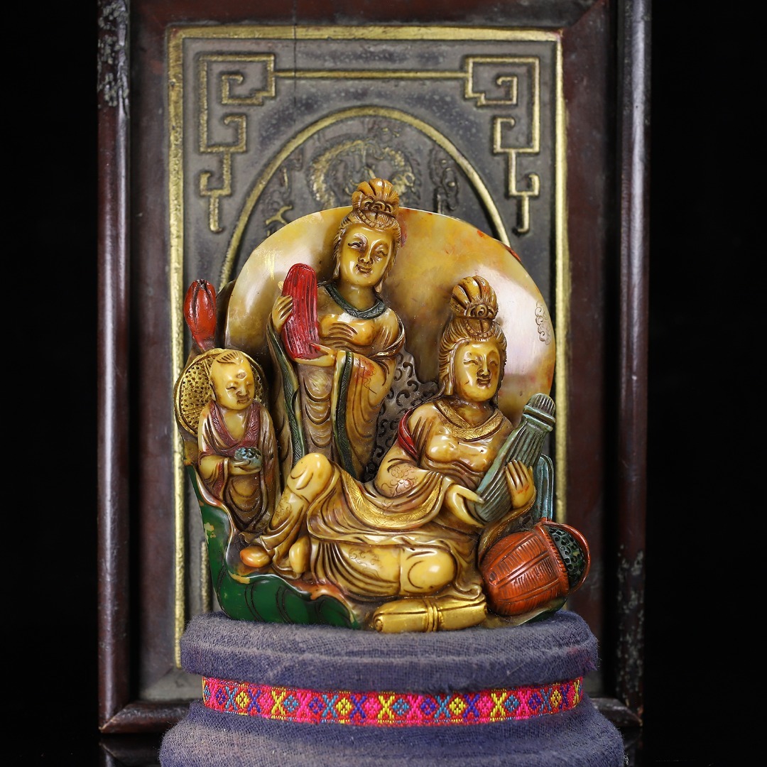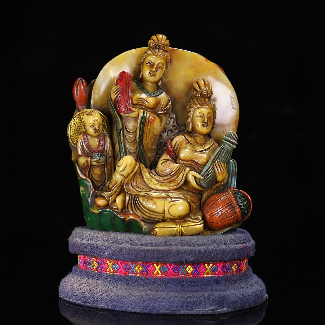 *珍品旧蔵* 【清代篆刻家 楊玉旋】寿山石 彩色観音の置物 天然石 手彫 篆刻 極細工 唐物 中国古玩 骨董品 古美味 H47