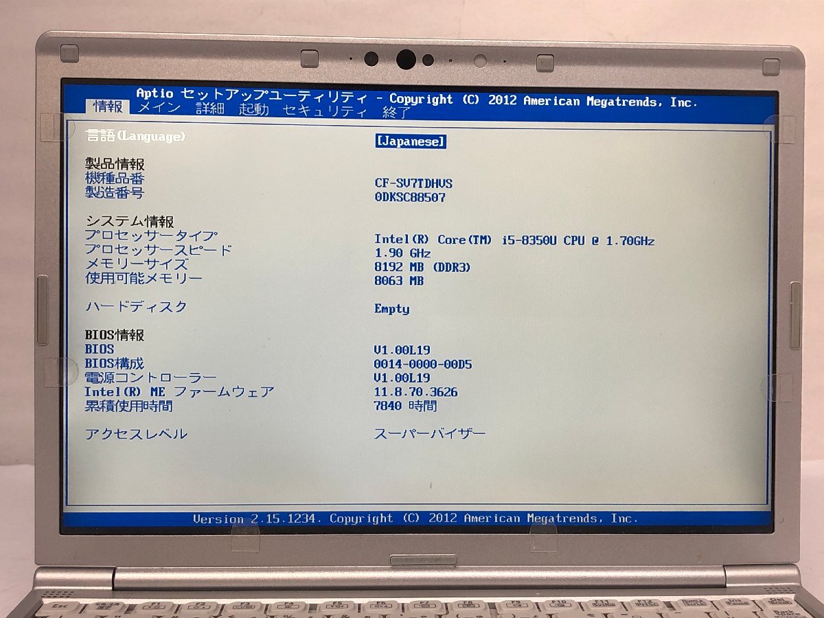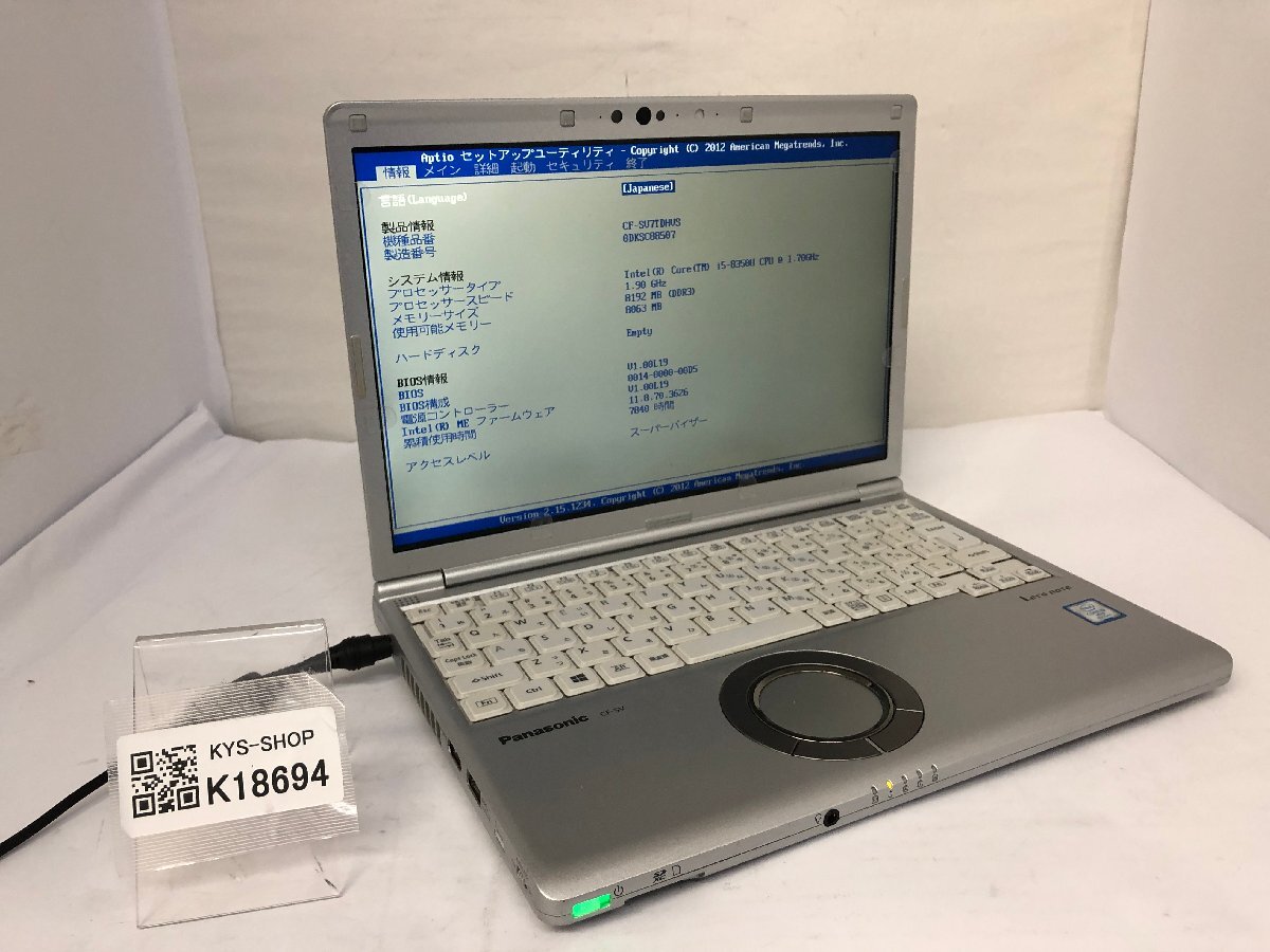 ジャンク/ Panasonic CF-SV7TDHVS Intel Core i5-8350U メモリ8.19GB ストレージ無し 【K18694】