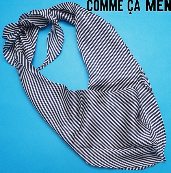 新品定価9240円 COMME CA MEN コムサメン 最高級 ストール 紺ストライプ(51) 56RZ15