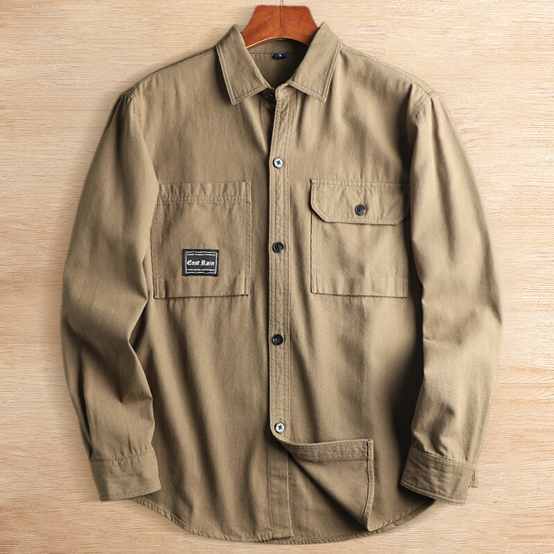 A7904-XL カーキ 新品 DCKMANY ウォッシュド コットン メンズ 長袖シャツ メンズ 綿100% 羽織りシャツ 春秋 胸ポケット オーバーシャツ