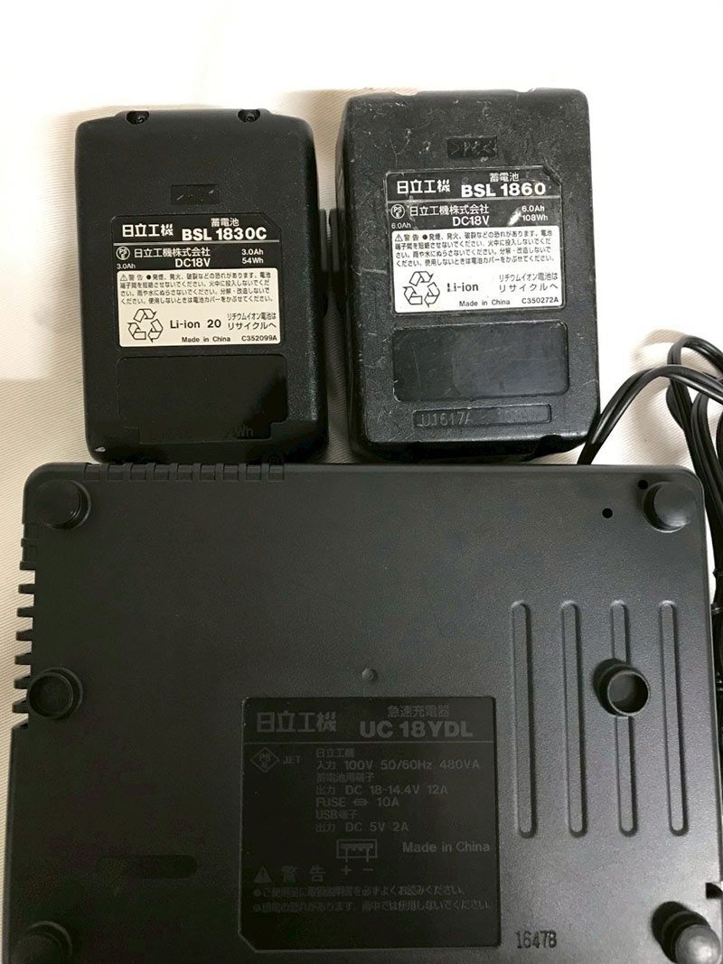 【北見市発】ヒタチ HITACHI 日立 コードレスインパクトドライバ WH18DDL2 急速充電器 UC 18YDL 蓄電池 BSL 1830C 蓄電池 BSL 1860 黒