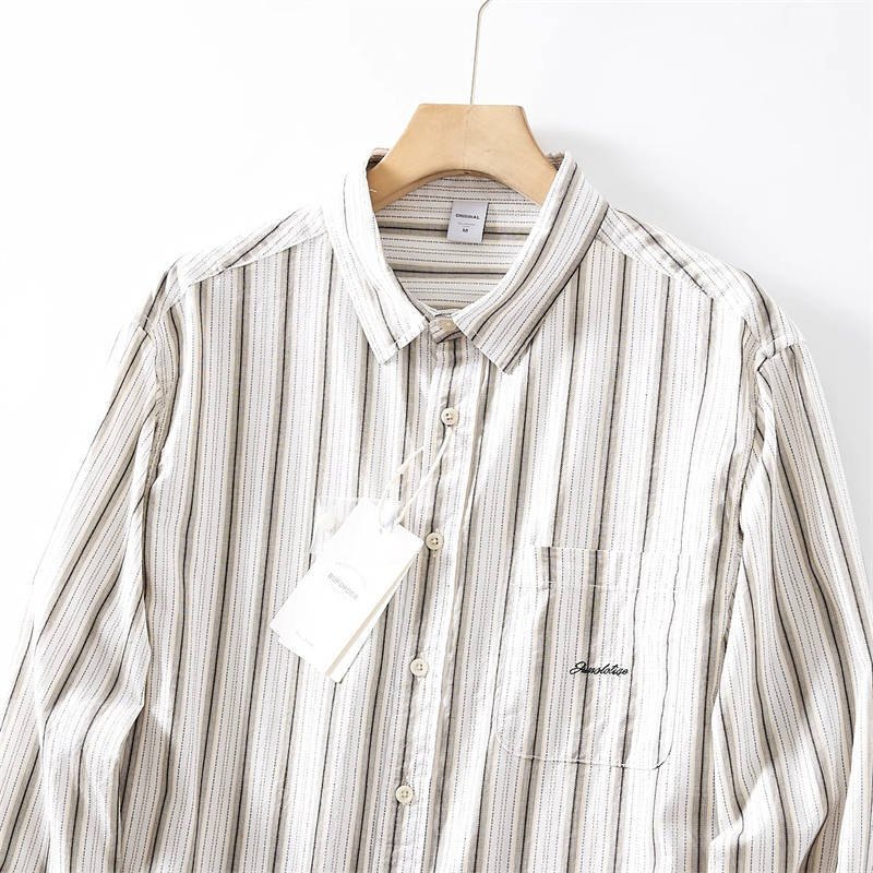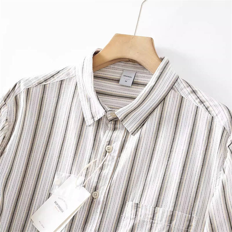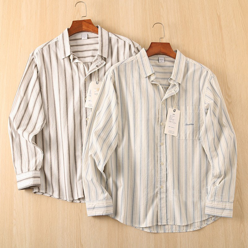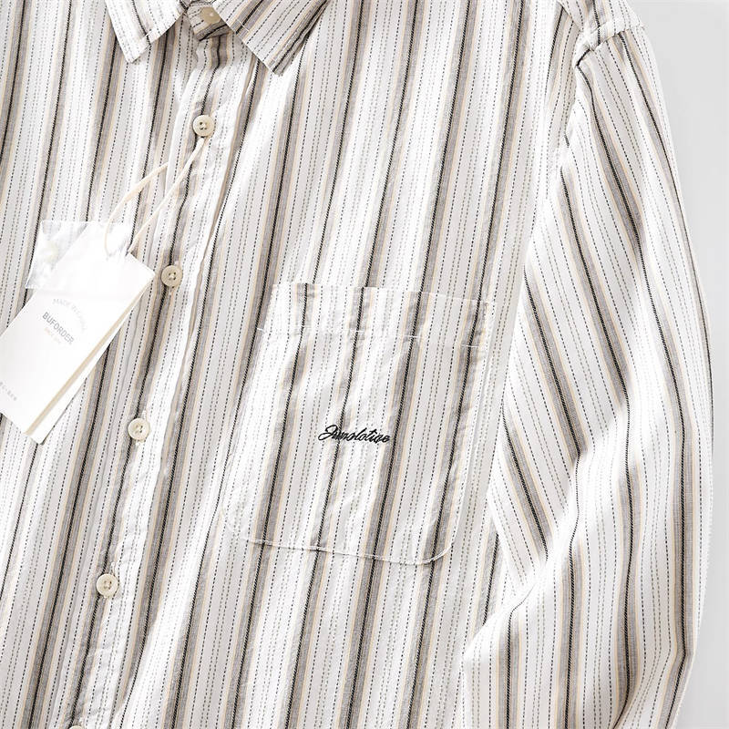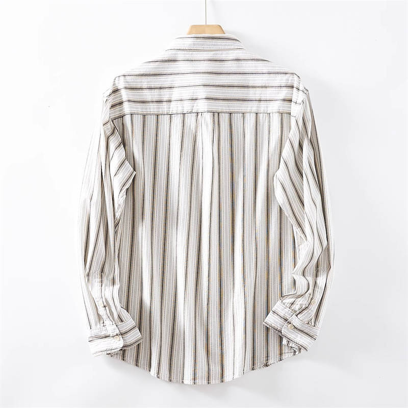 A7501-L 新品 生成 ストライプ ジャカード 綿100% クレープ 薄手 長袖シャツ メンズ ボタンダウン 春夏 レギュラーカラー カジュアル ワイシャツ