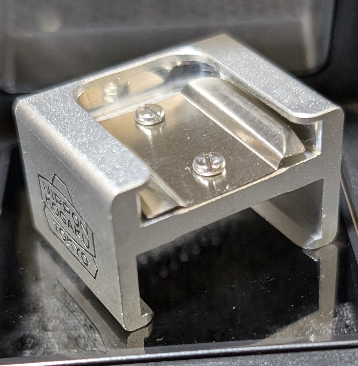 ニコンF、F2用Fロゴマーク、旧NIPPONKOGAKUマーク刻印入りコールドシューアダプターの紹介です。