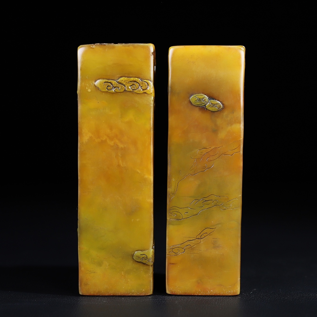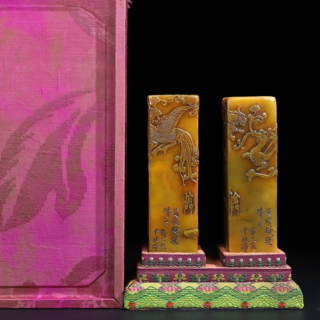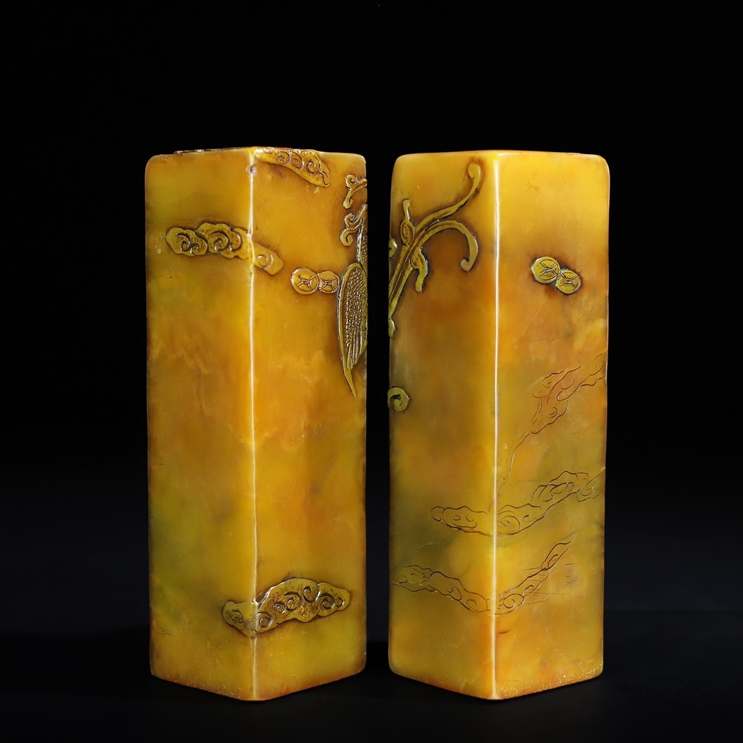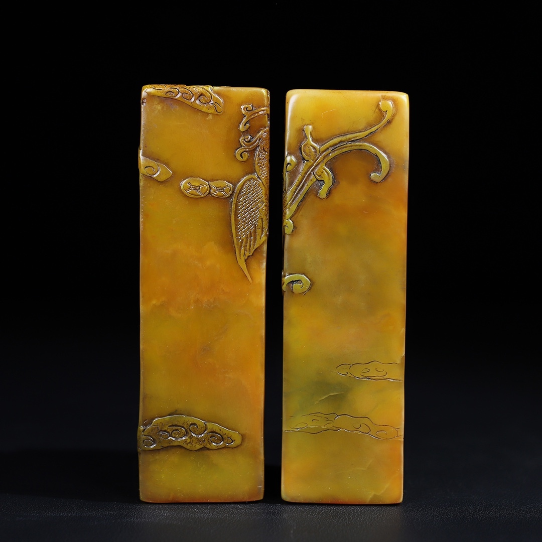 唐物 【清代篆刻家 呉俊】寿山石 田黄石 龍鳳祥 薄意印鑑セット 天然石 手彫 篆刻 古印材 極細工 古美術品 時代物 中国古玩 骨董品 D67