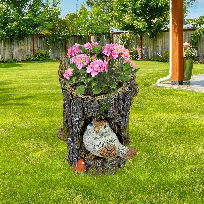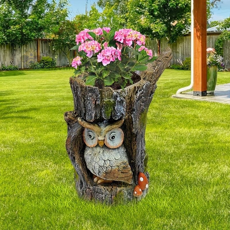 切り株の中にいる可愛らしいフクロウとトリが、あなたのガーデニングをより魅力的に彩るプランターです。多肉植物やサボテンを育てるのにぴったりなサイズ感で、インテリアとしても素敵なアクセントになります。屋内外を問わず、庭や玄関に置いていただけるデザインですので、どこにでもおしゃれに飾れます。贈り物やギフトにも喜ばれるアイテムです。