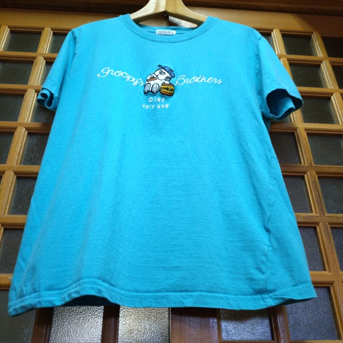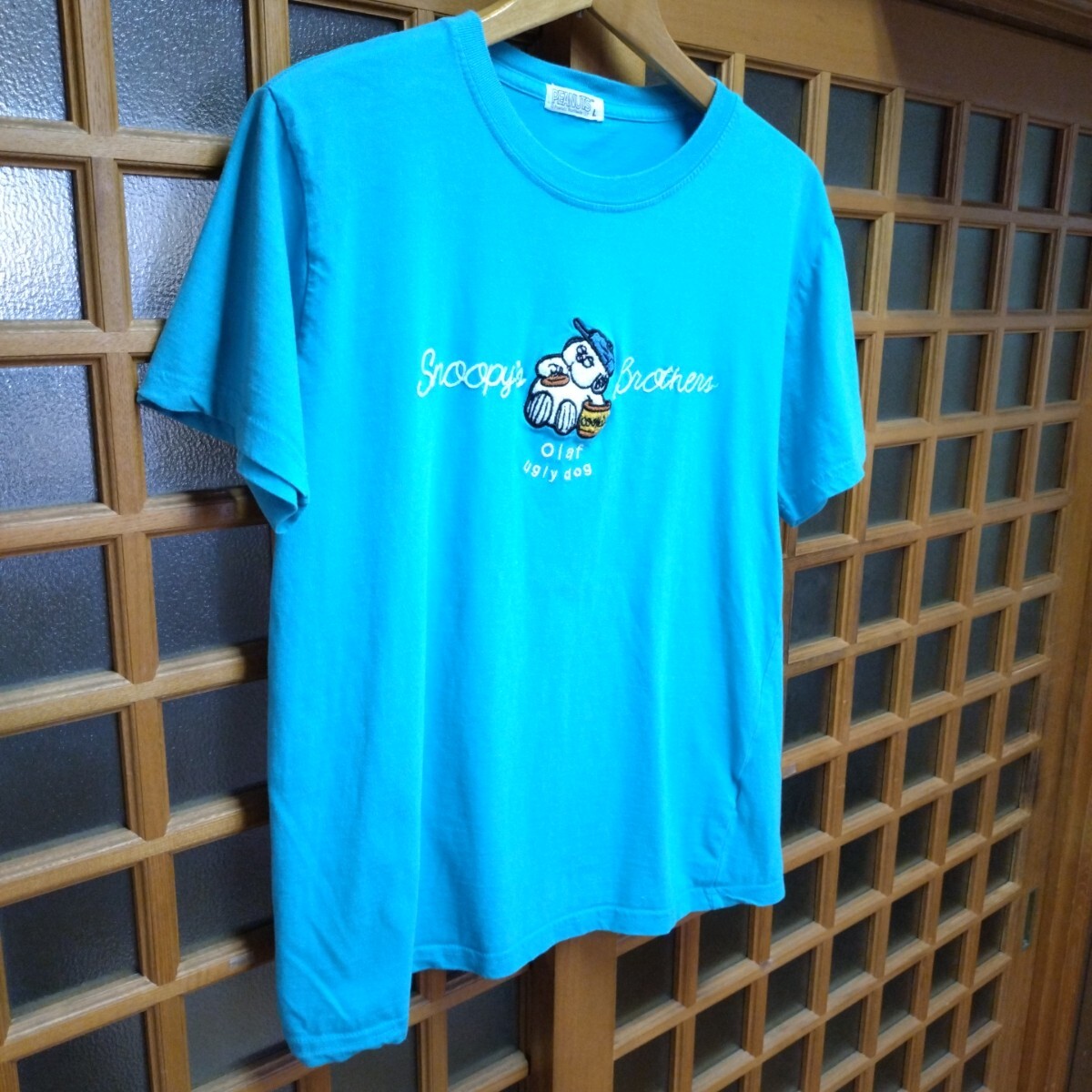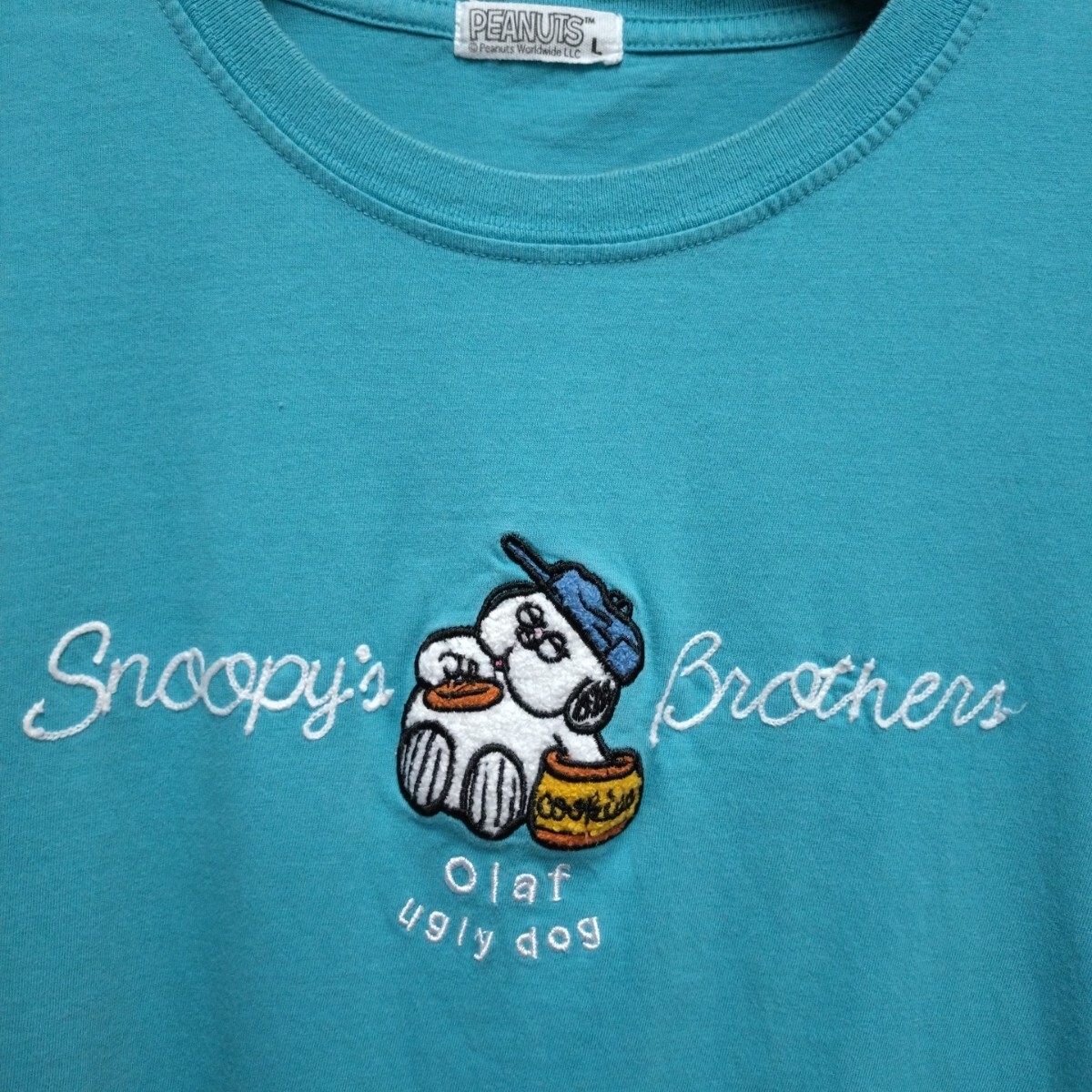 SNOOPY スヌーピー Tシャツ オラフ Lサイズ さがら刺 ターコイズブルー いぬ イヌ 犬 ビーグル 兄弟 ブラザー PEANUTS ピーナッツ