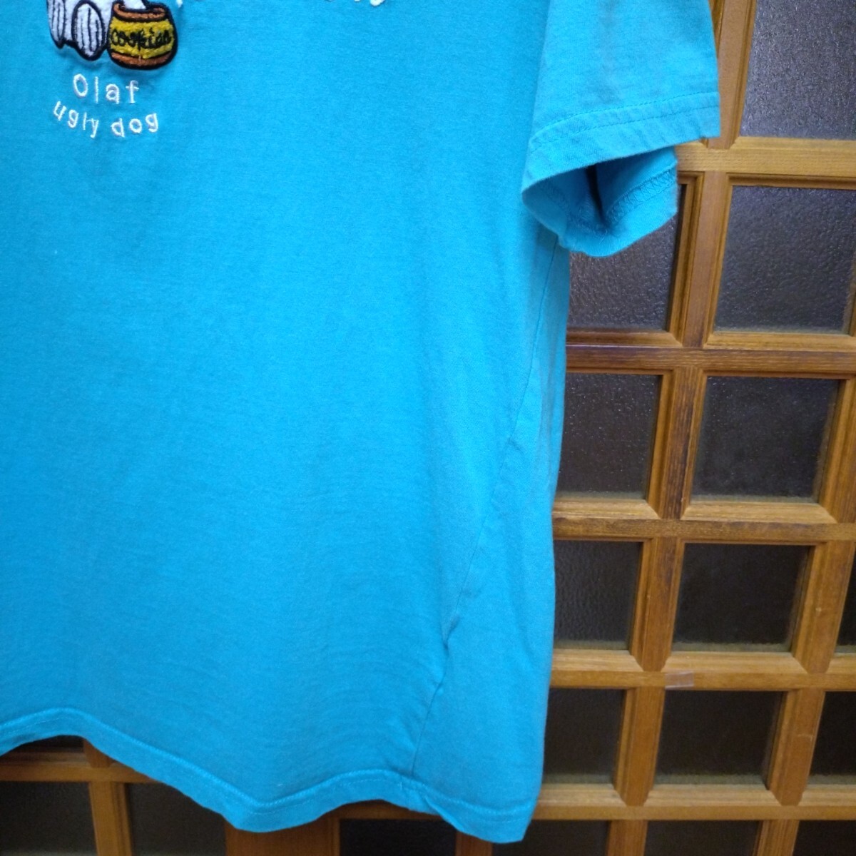 ◆SNOOPY スヌーピー Tシャツ オラフ Lサイズ さがら刺? ターコイズブルー◆