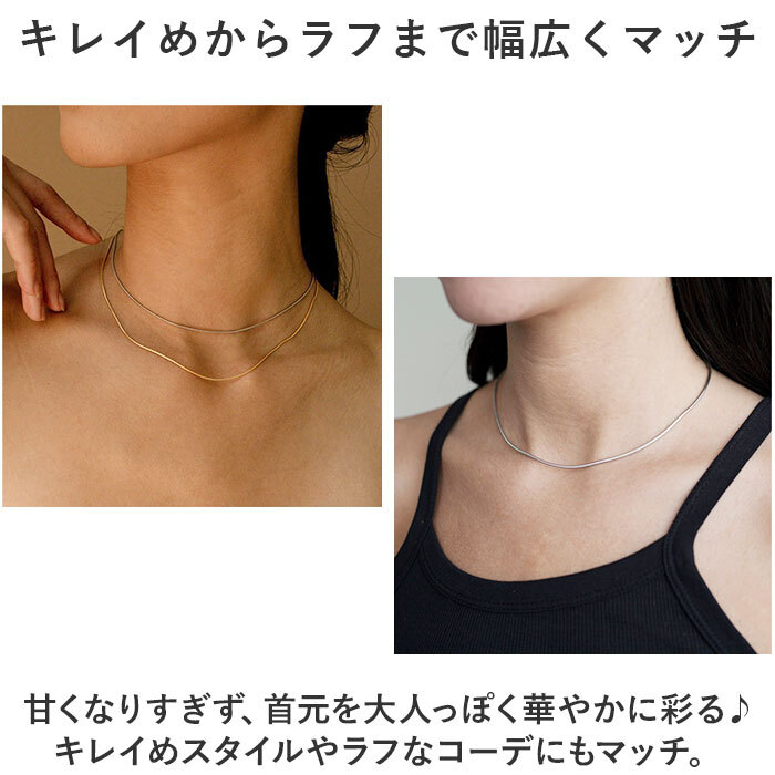 商品説明 | ・・つけっぱなしOK!1本つけるだけでも、重ねつけも、チャームをつけてもおしゃれ☆「ネックレス」が登場。 ・【デイリー使いに最適なシンプルさ】 ・シンプルだけどちゃんと存在感のあるスネークチェーン。毎日使いにちょうどよいアイテム。 ・【つけっぱなしOK!ステンレス製】 ・金属アレルギーを起こしにくく変色に強いステンレス素材を使用。シャワーもつけたままでOK! ・【重ねつけやチャームをつけても◎】 ・長さの違うモノを重ねてつけたり、チャームを通してつけるのも◎もちろん、1本でも様になる! ・【長さと太さとカラーが選べる】 ・選べる長さと太さとカラー。それぞれ雰囲気が違い、どれも魅力的☆お好みをチョイス! ・【キレイめからラフまで幅広くマッチ】 ・甘くなりすぎず、首元を大人っぽく華やかに彩る♪キレイめスタイルやラフなコーデにもマッチ。 ・【ギフトにも◎きっと喜ばれる】 ・シンプルでデイリー使いにぴったりなアイテムなので、ギフトにぴったり!きっと喜ばれる♪ |