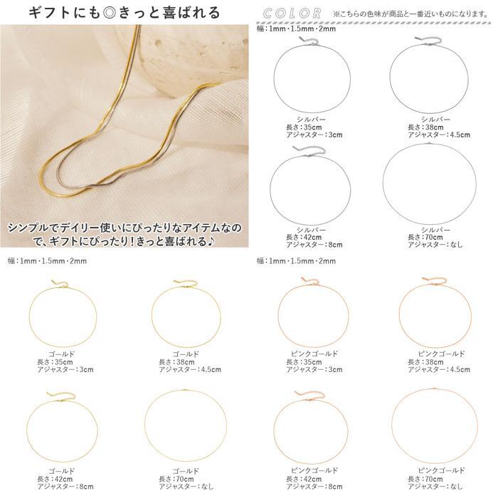 サイズ | 【長さ約35cm】 [幅]約1mm、約1.5mm、約2mm (+3cmアジャスター付) 【長さ約38cm】 [幅]約1mm、約1.5mm、約2mm (+4.5cmアジャスター付) 【長さ約42cm】 [幅]約1mm、約1.5mm、約2mm (+8cmアジャスター付) 【長さ約70cm】 [幅]約1mm、約1.5mm、約2mm (アジャスターなし) ※サイズはメーカー公表サイズです。実際の商品とは多少の誤差が生じる場合がございます。あらかじめご了承ください。 |