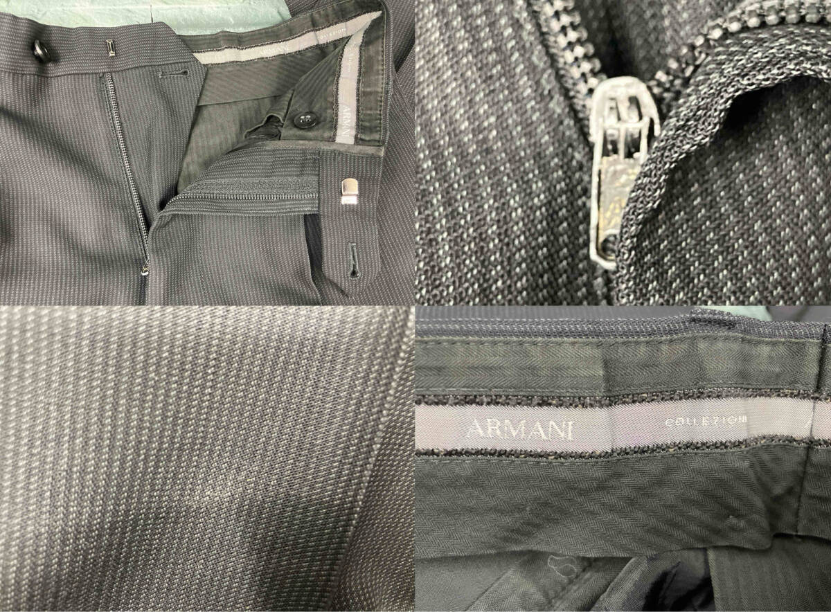 ジャケットサイズ 平置き採寸 肩幅 : 約44.5cm 身幅 : 約49cm 着丈 : 約77cm 袖丈 : 約62cm スラックスサイズ ウエスト : 約68cm 股下 : 約76.5cm 裾幅 : 約22cm 股上 : 約29.5cm 状態 スラックスファスナーの動きが少し悪いです。 目立つ傷や汚れはなく、まだまだ着用いただけます。 ※中古品のため、多少の使用感はご了承ください。 | ||||||