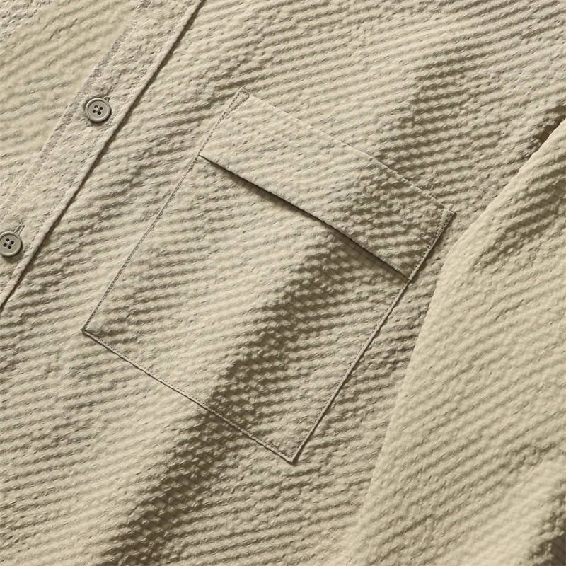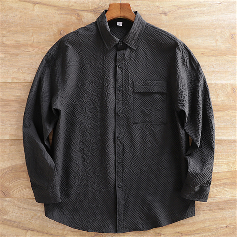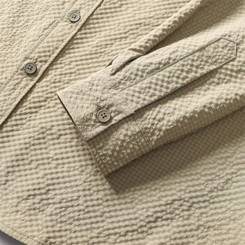 新品 シアサッカー 長袖シャツ DCKMANY メンズ 速乾 レギュラーカラー 薄手 防シワ 胸ポケット 春夏 カジュアル トップ 春秋