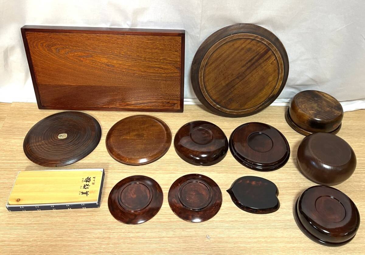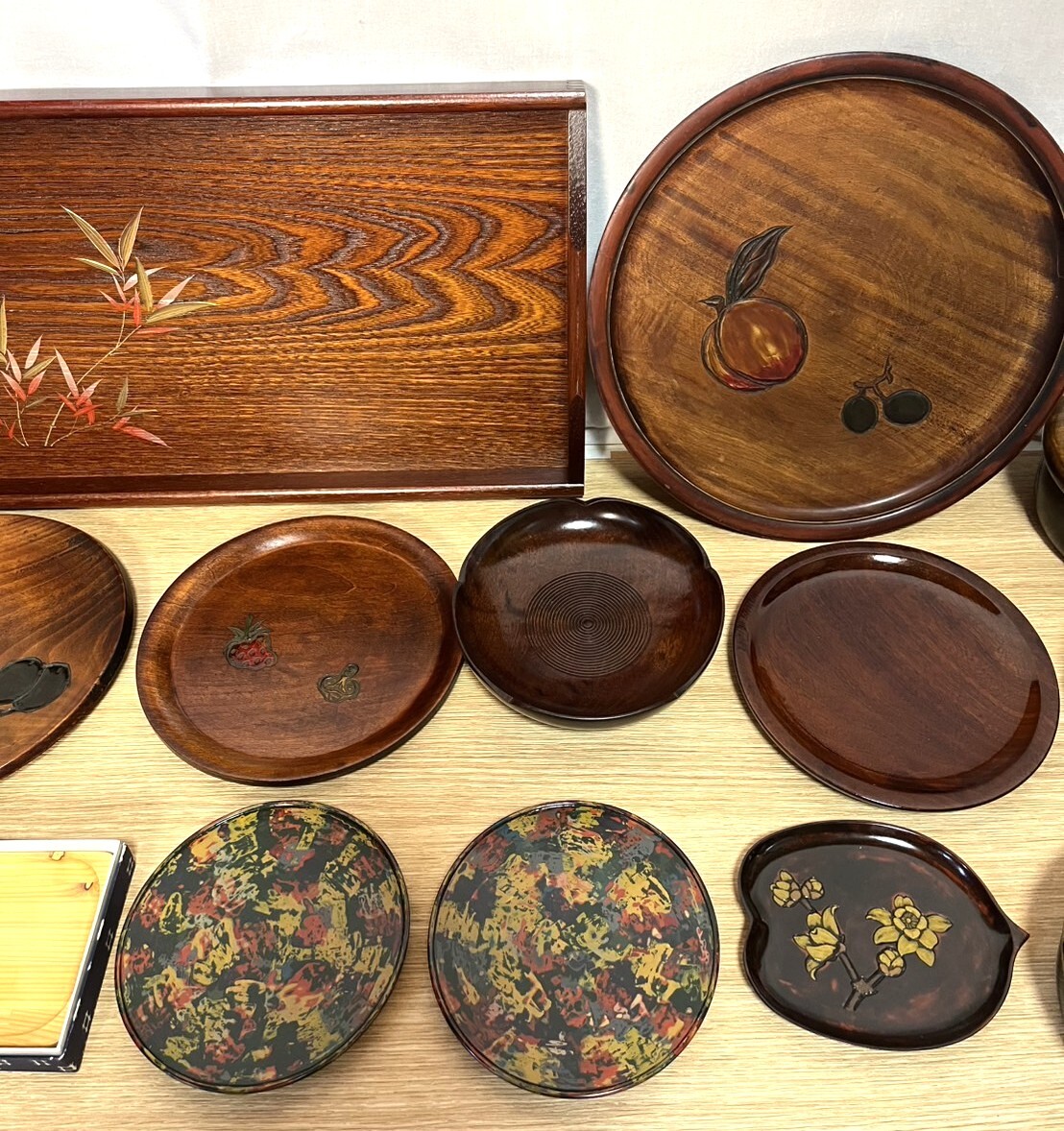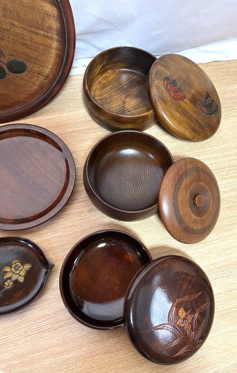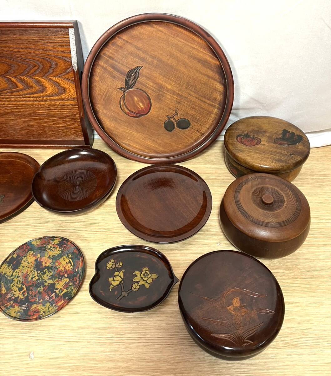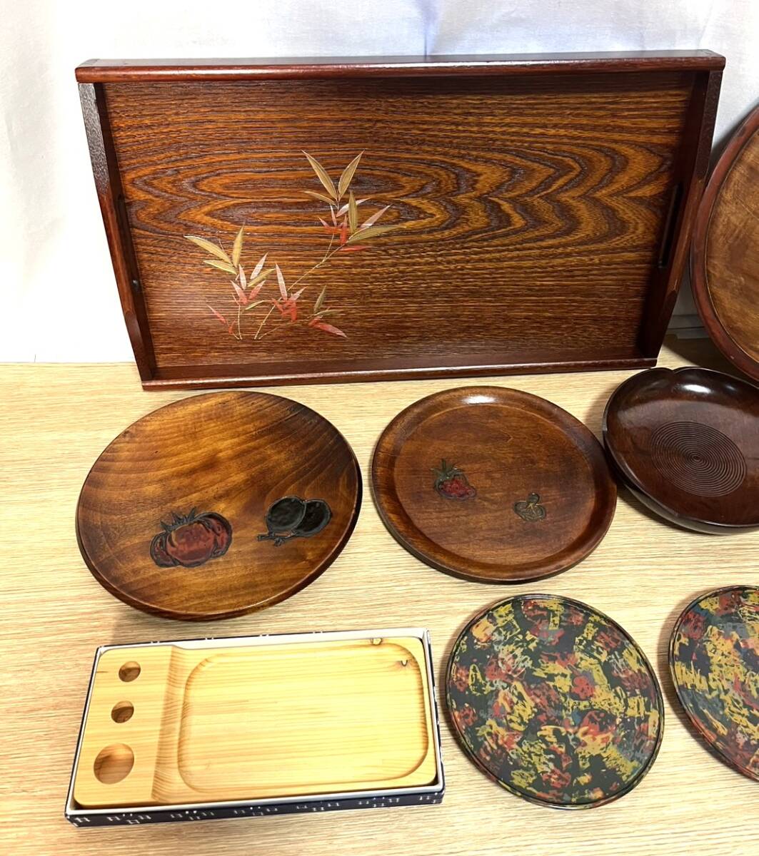【M861】木製/食器/漆器/色々まとめ/13点/お盆/トレー/菓子入れ/漆器/木彫り/小皿/銘々皿/和食器/中古/現状品