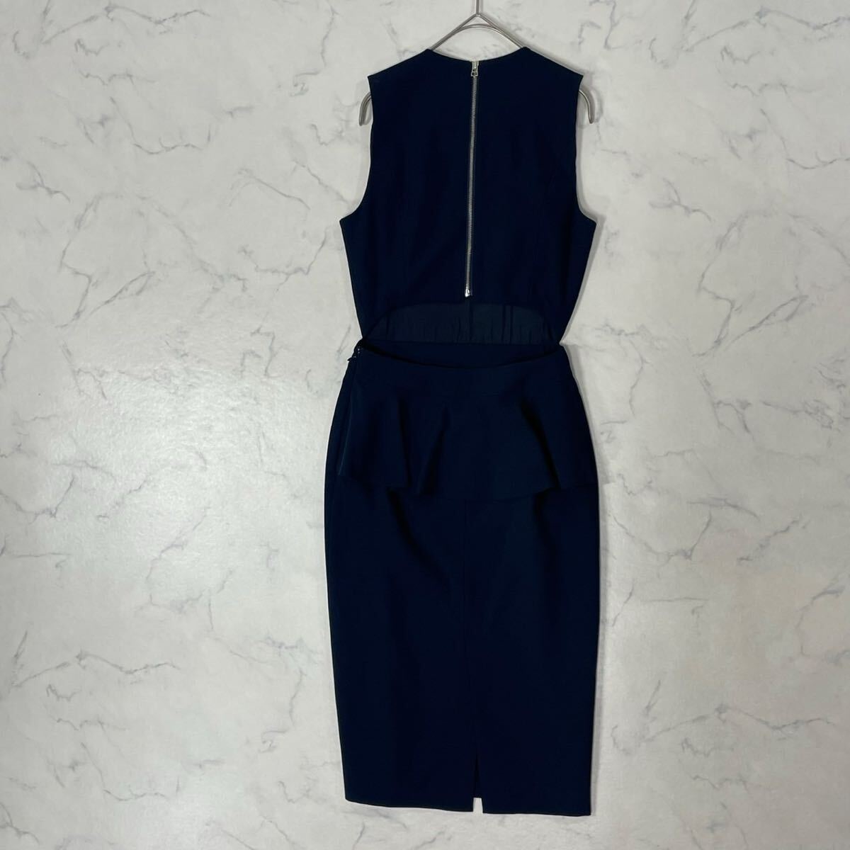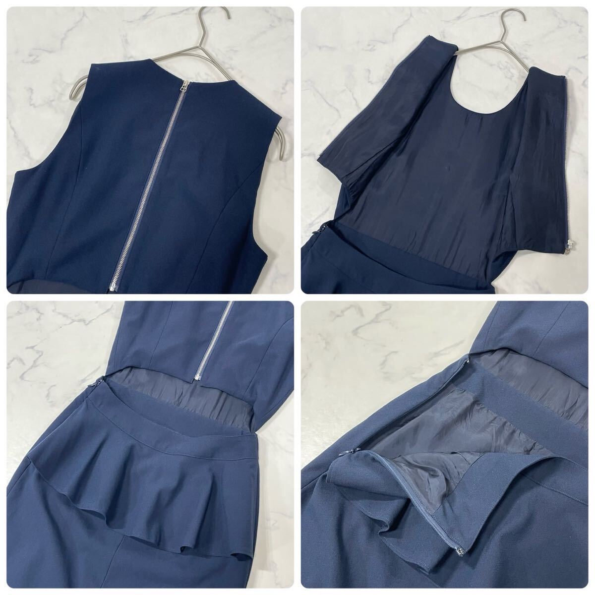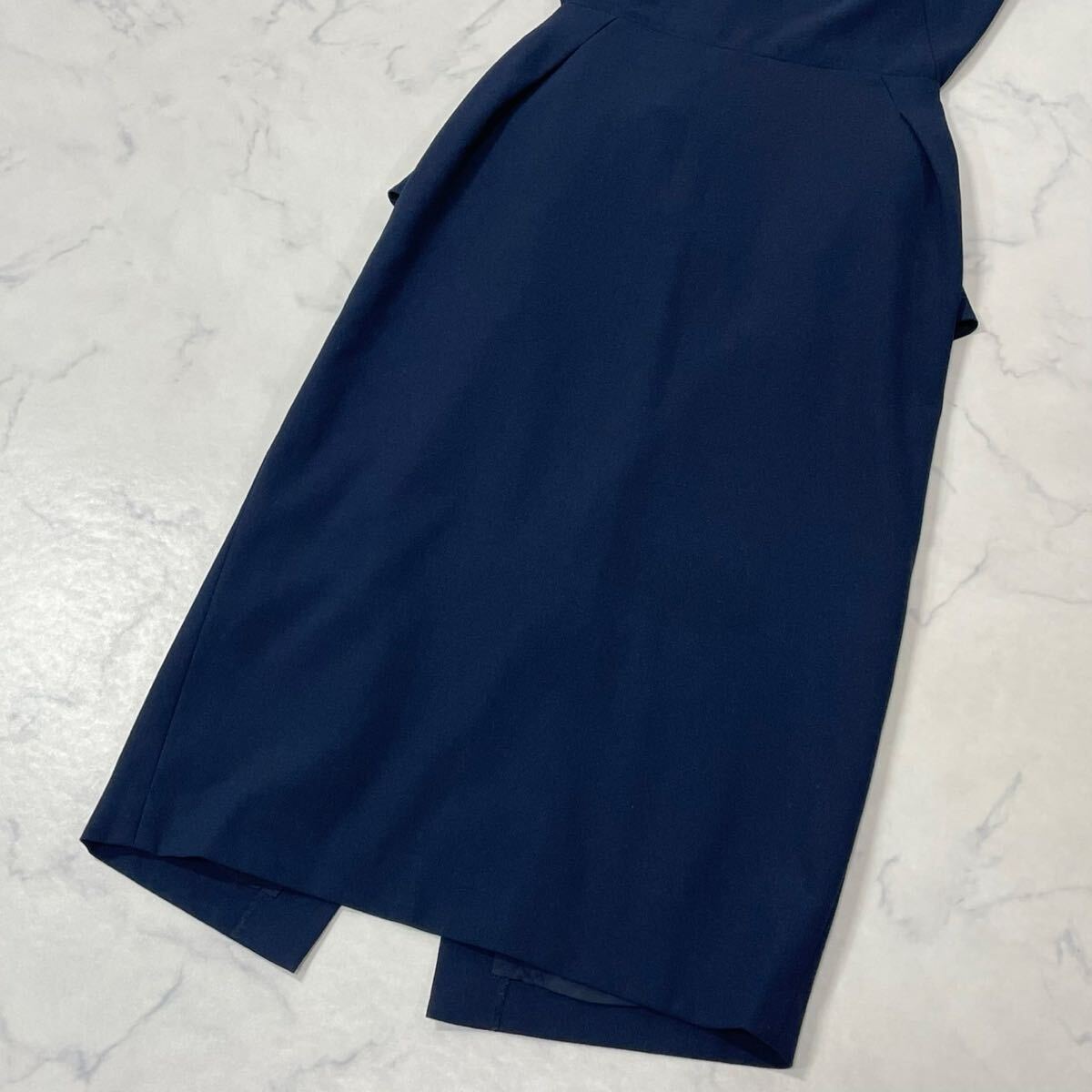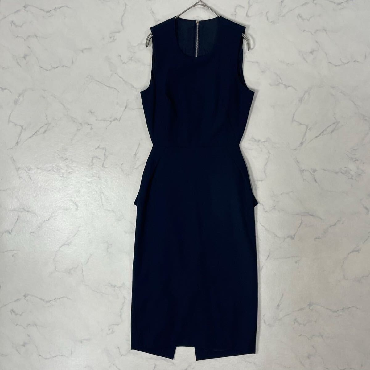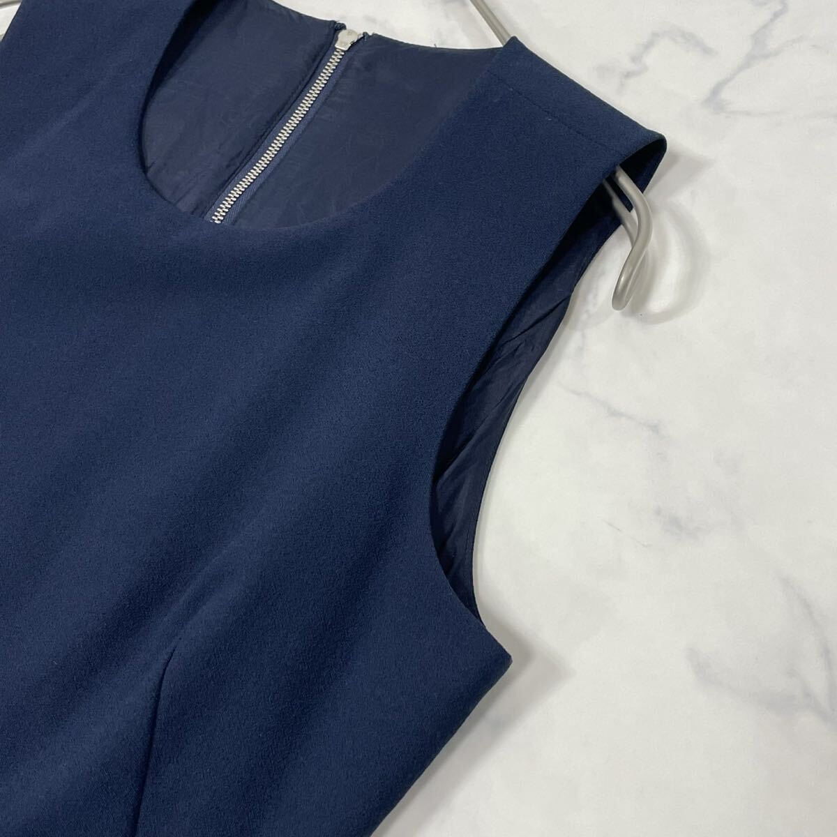 日本製 切替 ワントーン 裏地付き ダーツ タック フリル ベンツ ジップ クルーネック ノースリーブ ひざ丈 ワンピース