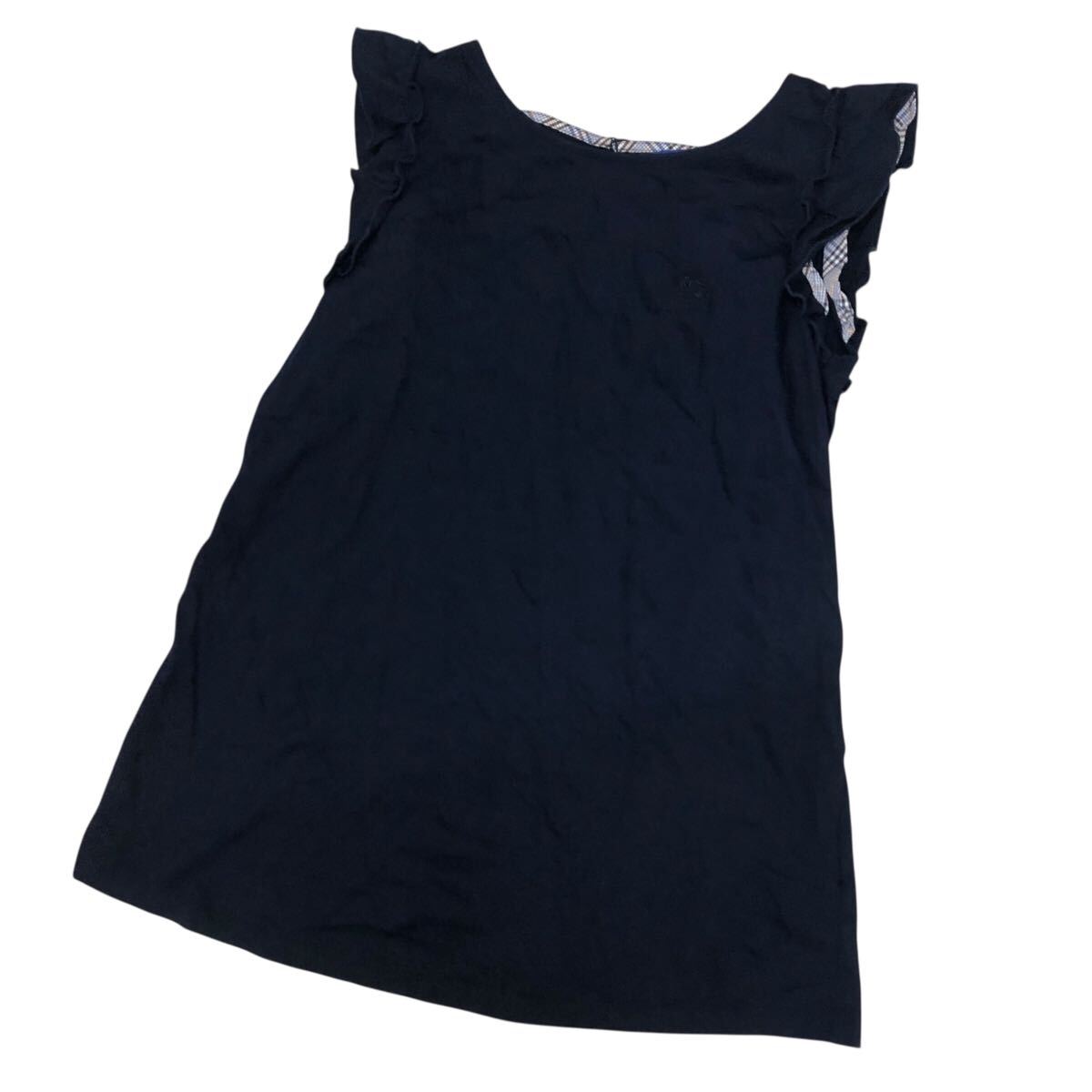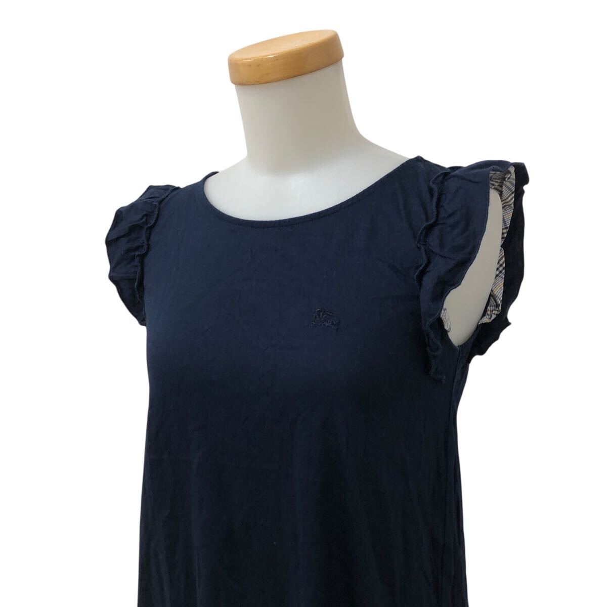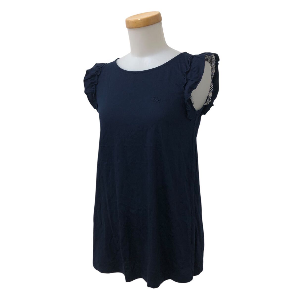 K325-10 BURBERRY バーバリー BLUE LABEL ブルーレーベル ノースリーブ カットソー トップス チュニック ネイビー フリル レディース 女性用 38