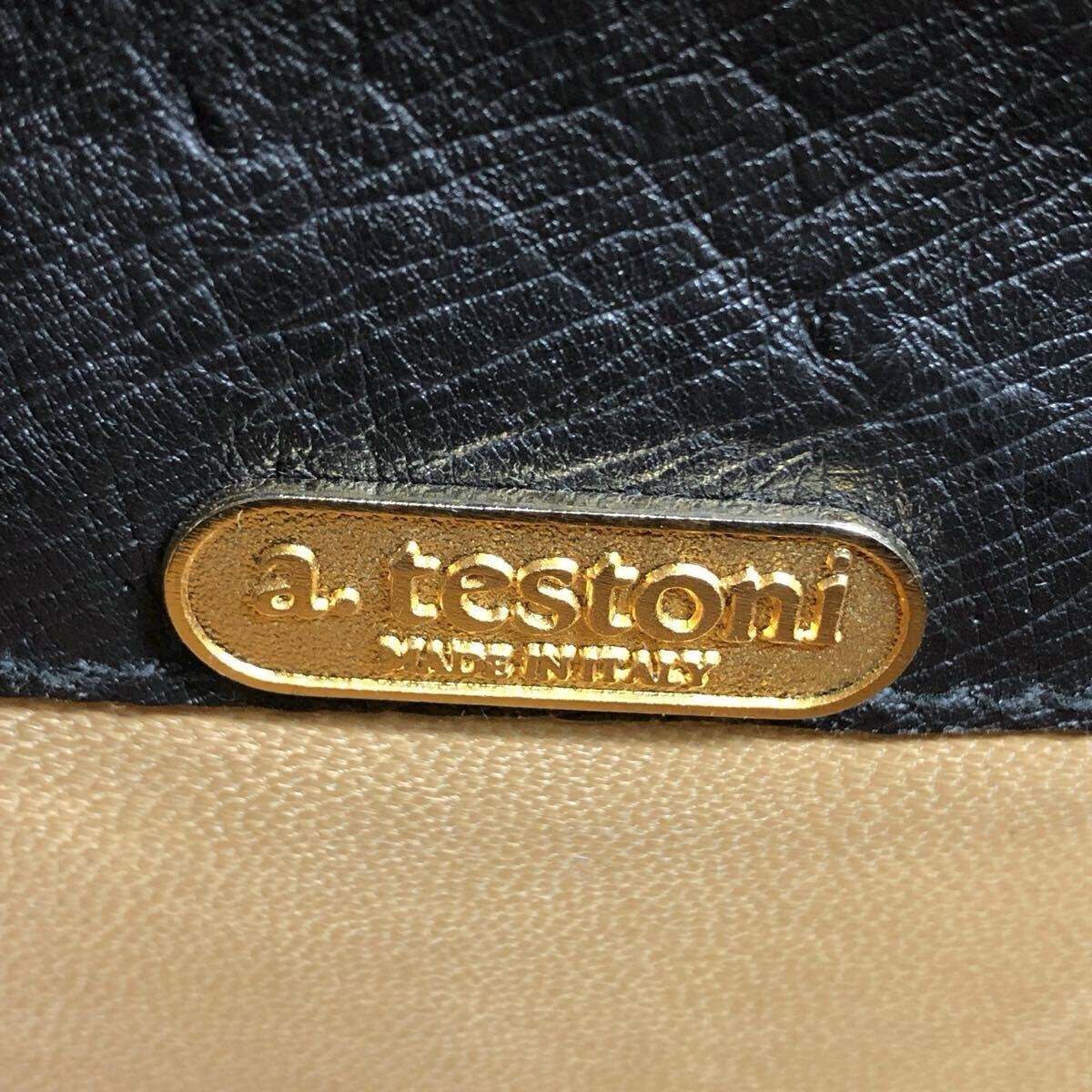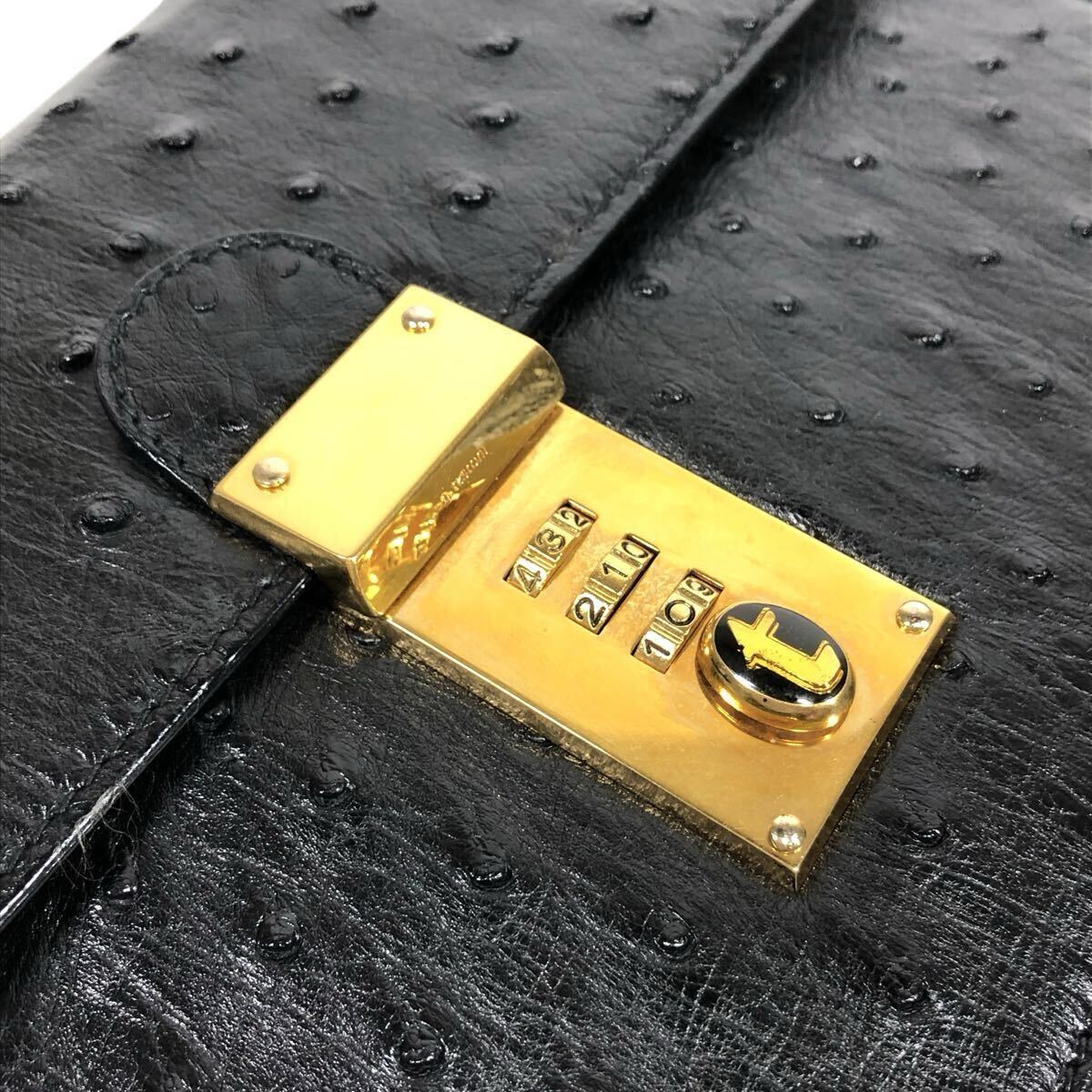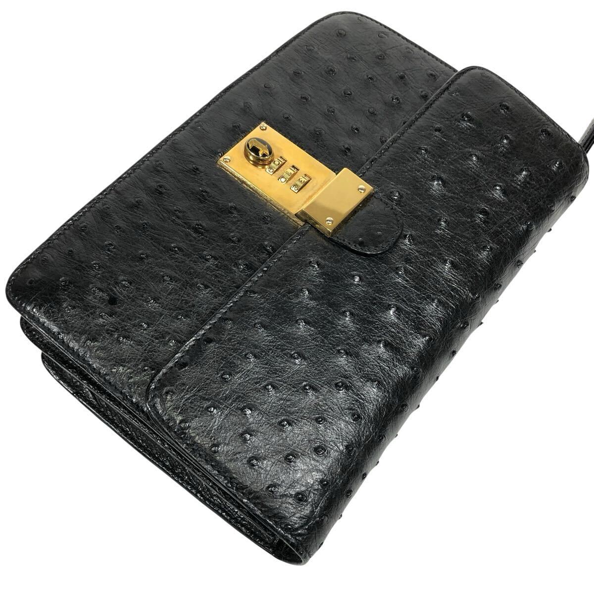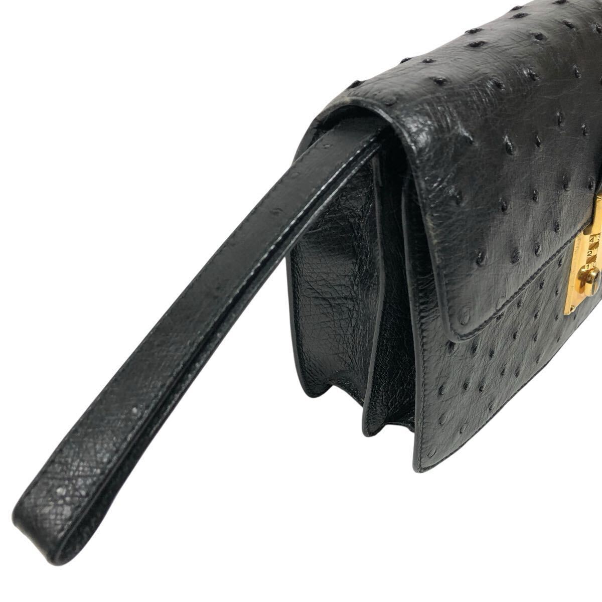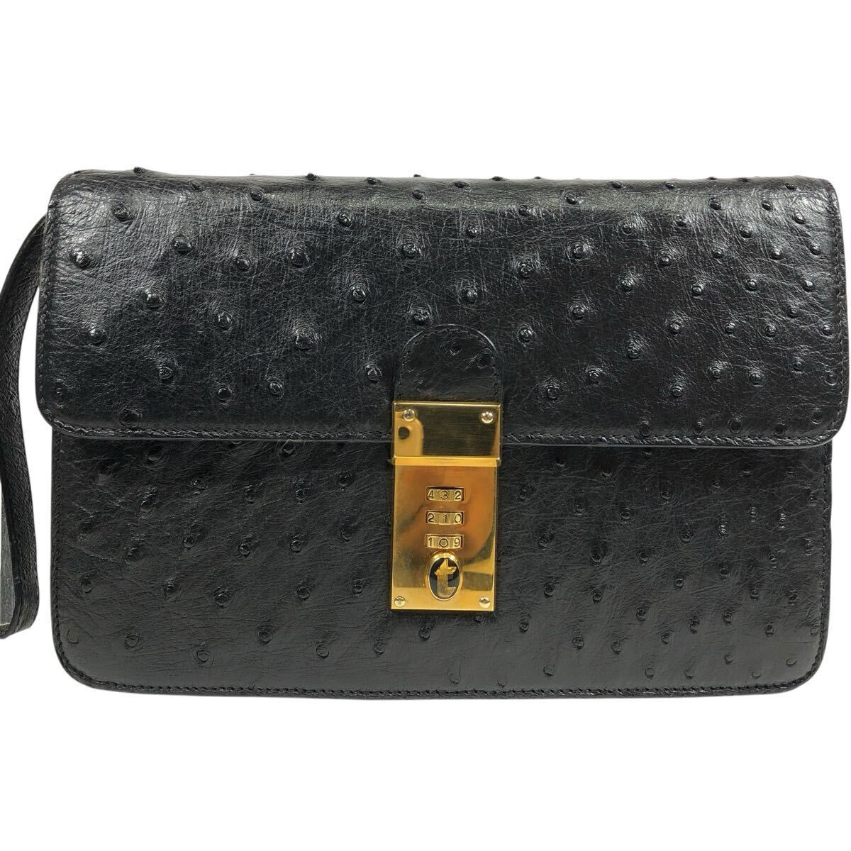 【ア・テストーニ】本物 a.testoni オーストリッチ セカンドバッグ ダイヤルロック金具 クラッチバッグ ハンドストラップ 駝鳥 メンズ 伊製