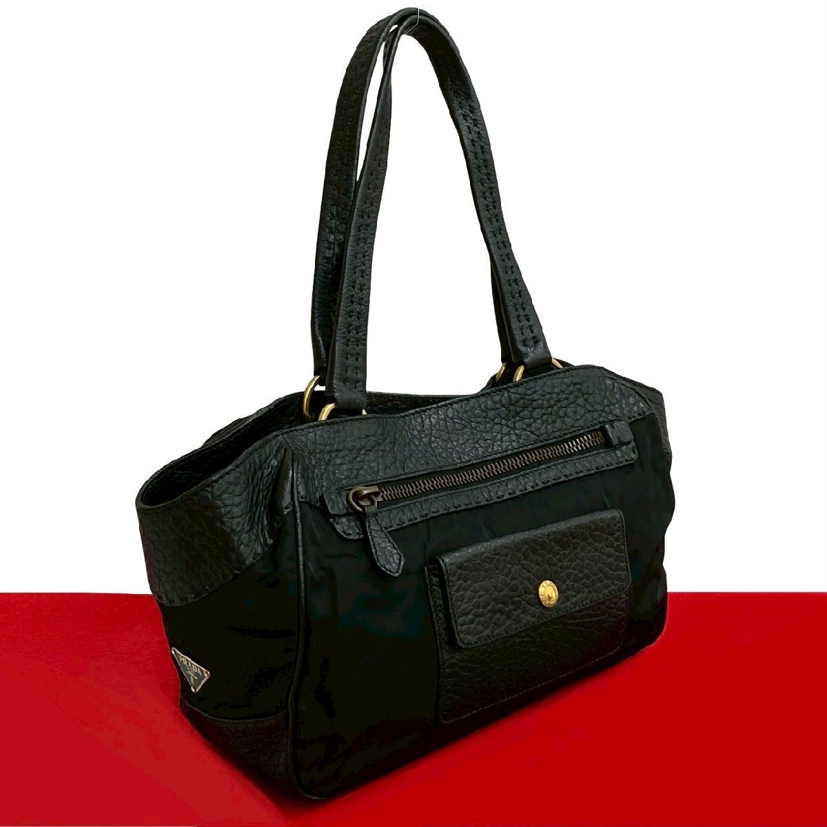 極 美品 PRADA プラダ 三角ロゴ プレート 金具 レザー 本革 テスート ナイロン セミ ショルダーバッグ ミニ トートバッグ ブラック 25089