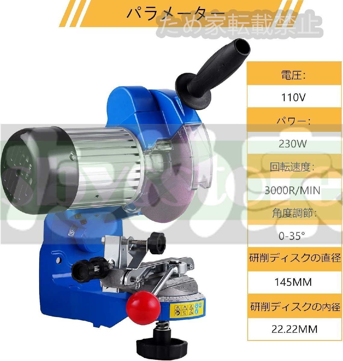 電動式チェンソー目立機 チェーン研磨機 110V 0-35°角度調整可能 電気チェーンソーシャープナー 回転速度3000(r/min)