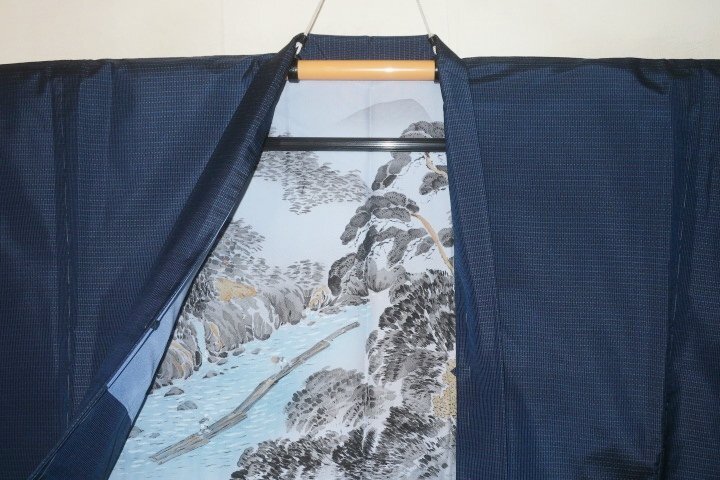 | ★商品説明 着物:肩着丈140cm・羽織丈95cm、裄70cm・羽織71cm、前幅24.5cm、衽15cm、後幅30.5cm。適応身長168cmくらい。 |