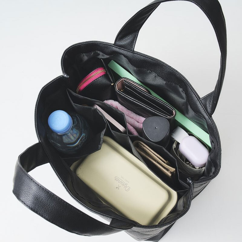 クレイサス CLATHAS 収納 5ポケット バッグ 機能性 お出かけ レザー調 キルティング トートバッグ カメリアポイント オシャレバッグ 2