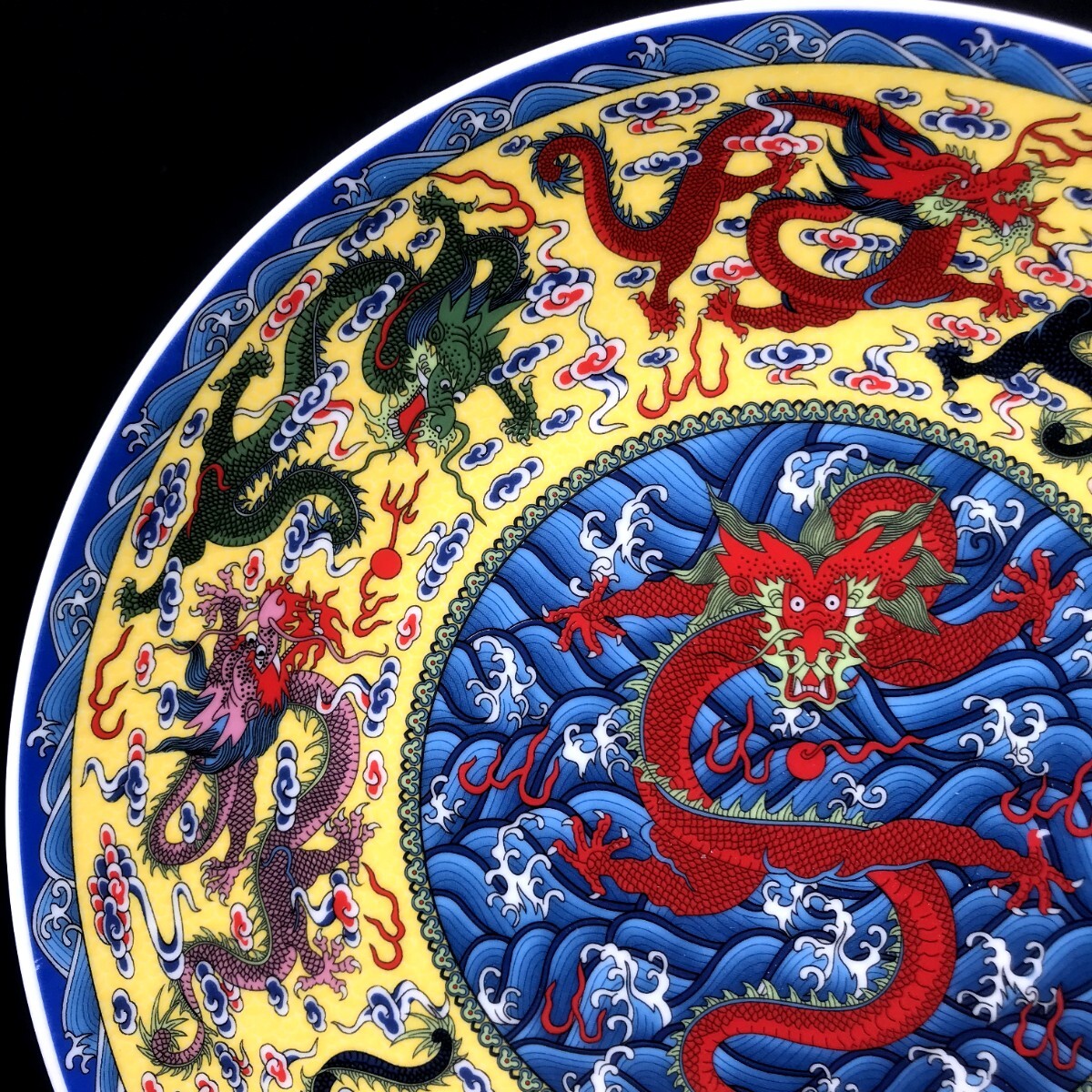 中国古玩 古美術 粉彩 五彩龍紋 色絵 唐物 時代物 藏出 飾り皿 飾皿 大清乾隆年製款 大皿 賞物 観賞皿 中国陶磁 中国美術品 収蔵 置物