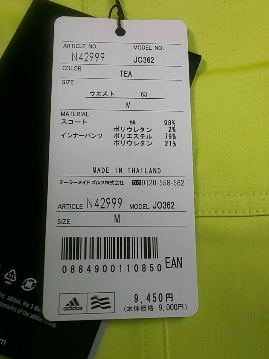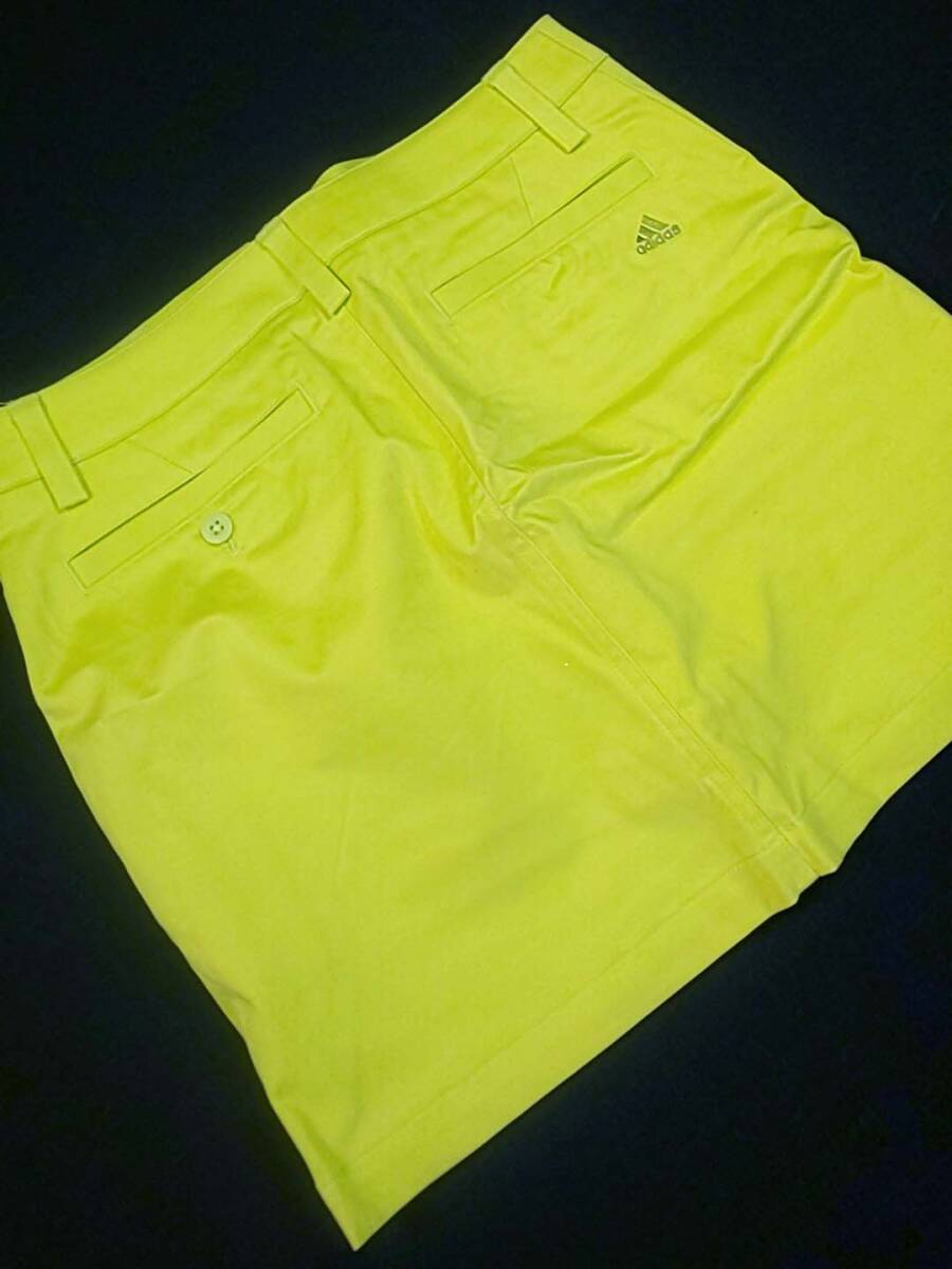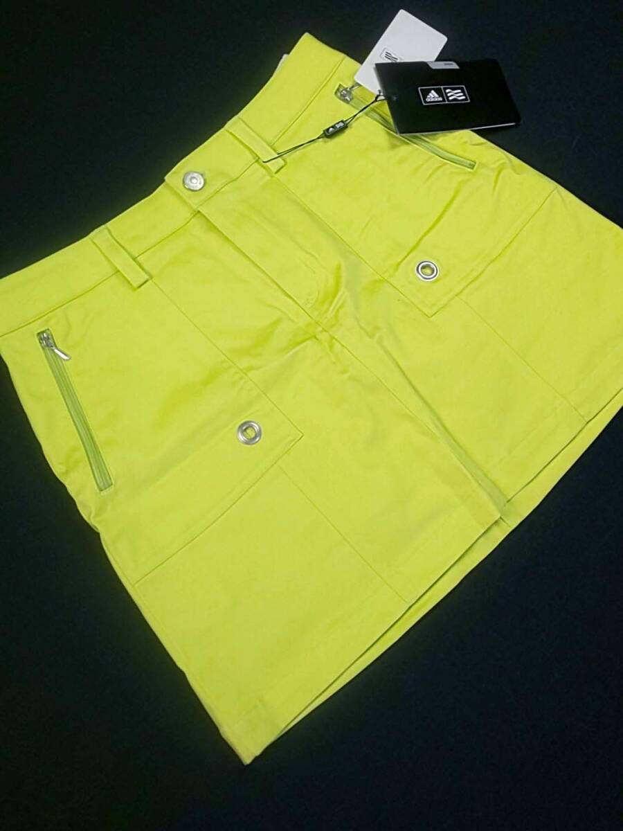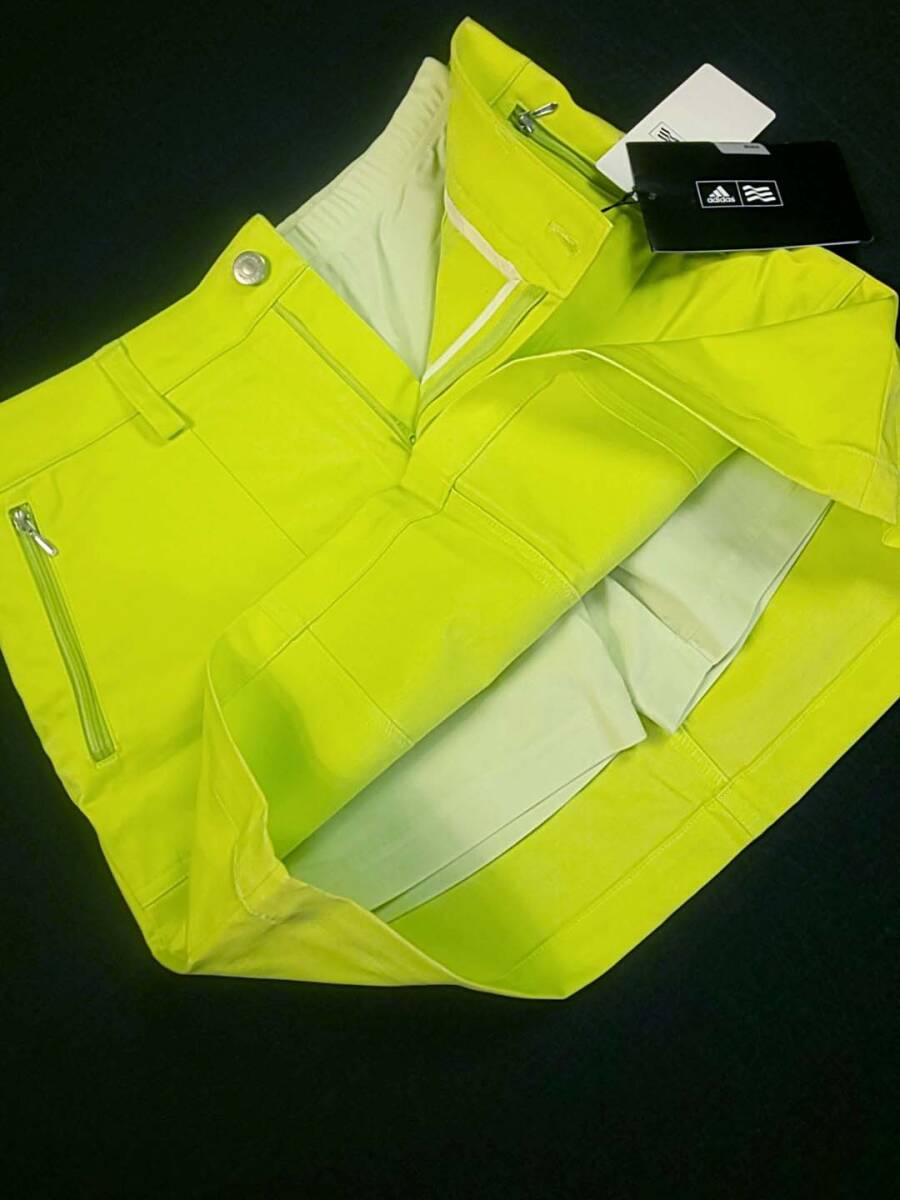 最終処分 新品 SALE!! 70%OFF 送料無料 adidas ゴルフ スコート(インナーパンツ付き) Mサイズ W63 綿98% ストレッチ 蛍光黄緑 N42999