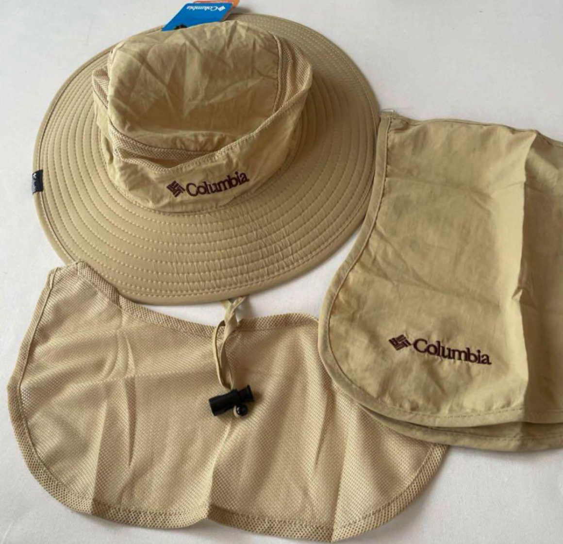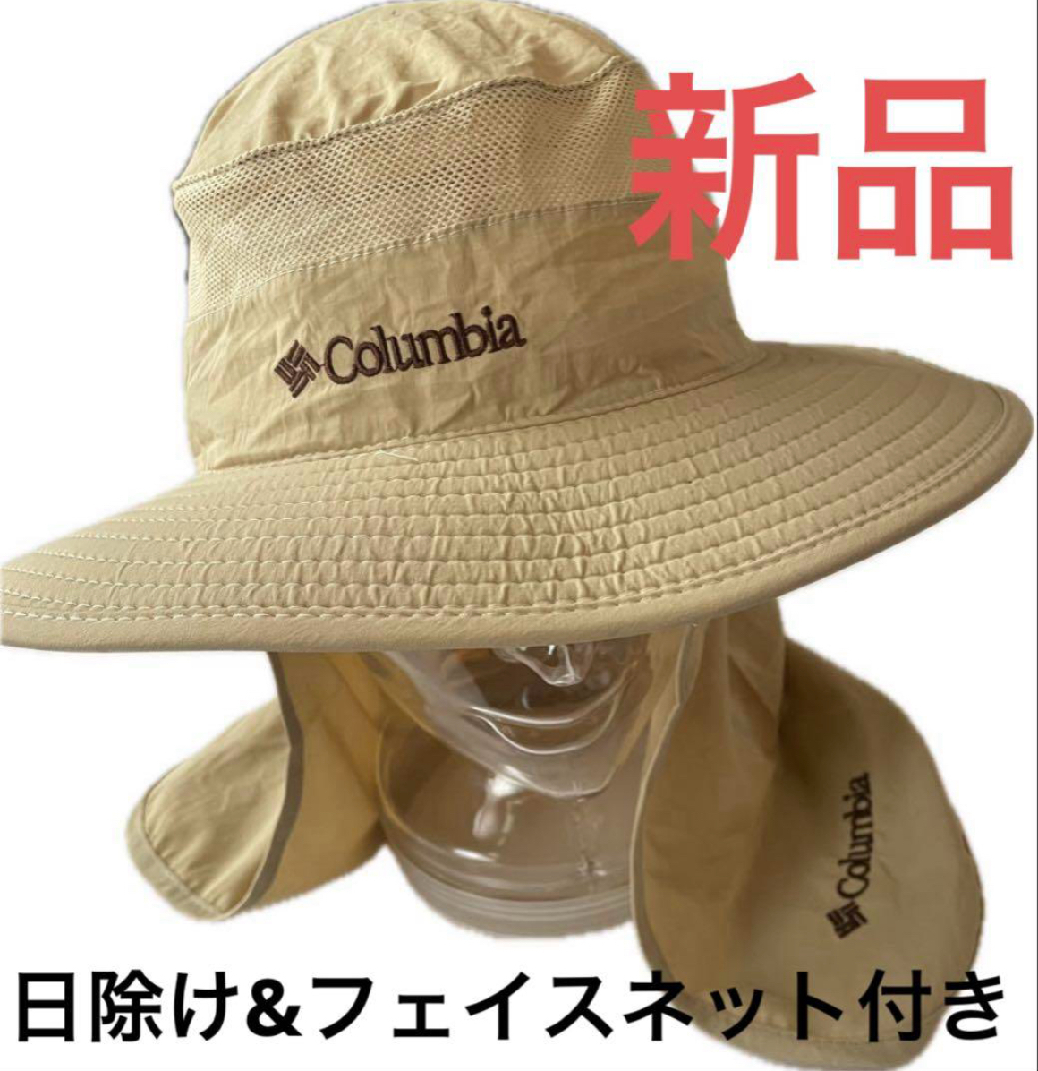 新品コロンビア帽子Columbia未使用品アウトドアハット日焼け対策 ベージュ Columbia フリーサイズ調節可能