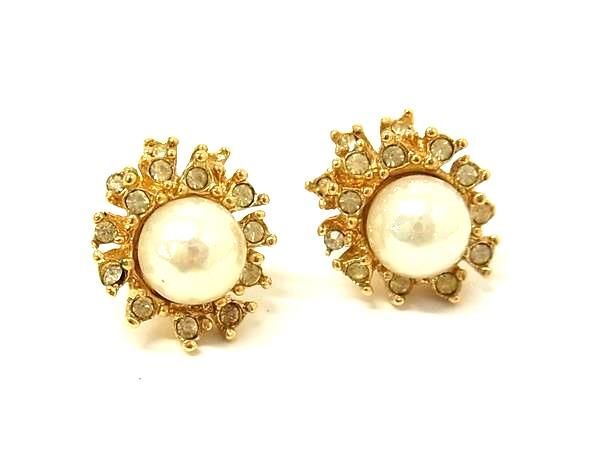 ■美品■ NINA RICCI ニナリッチ パール ラインストーン ピアス アクセサリー レディース ゴールド系 DE4883