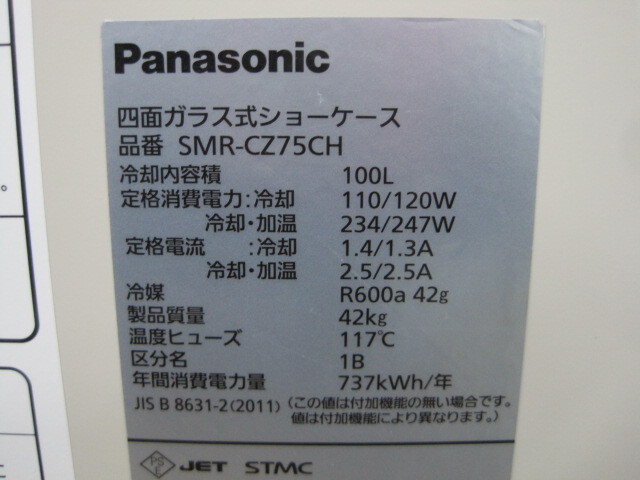 保証付【パナソニック】【業務用】【中古】 HOT&COLDショーケース SMR-CZ75CH 単相100V W470xD463xH880mm