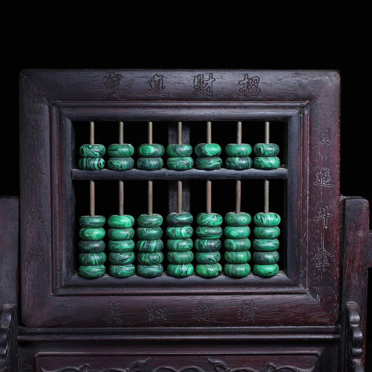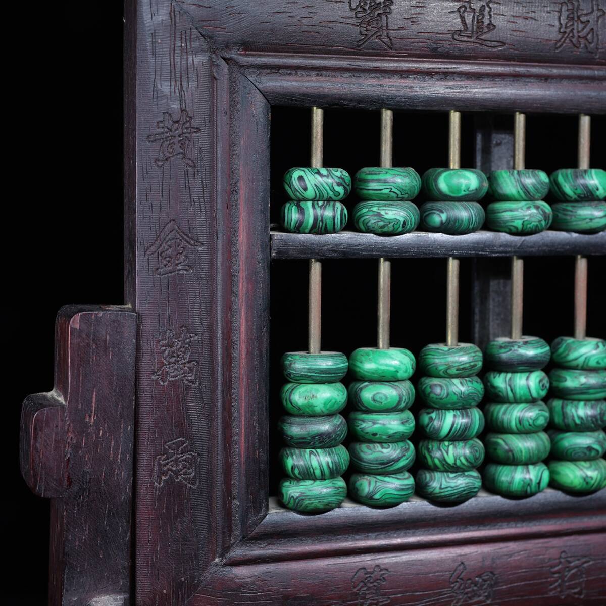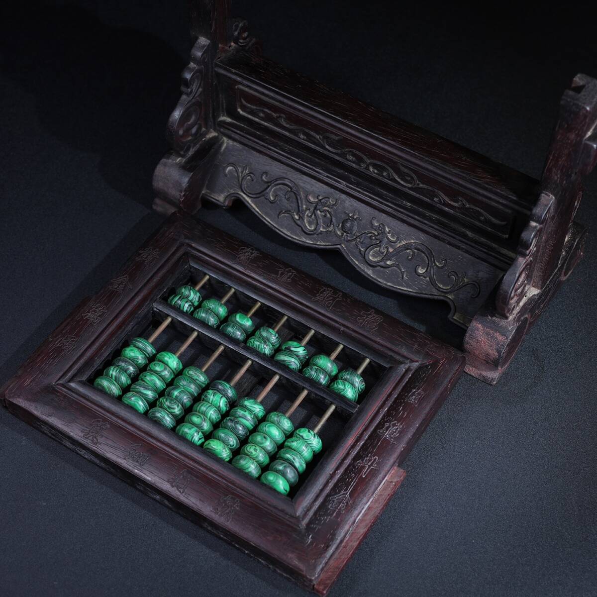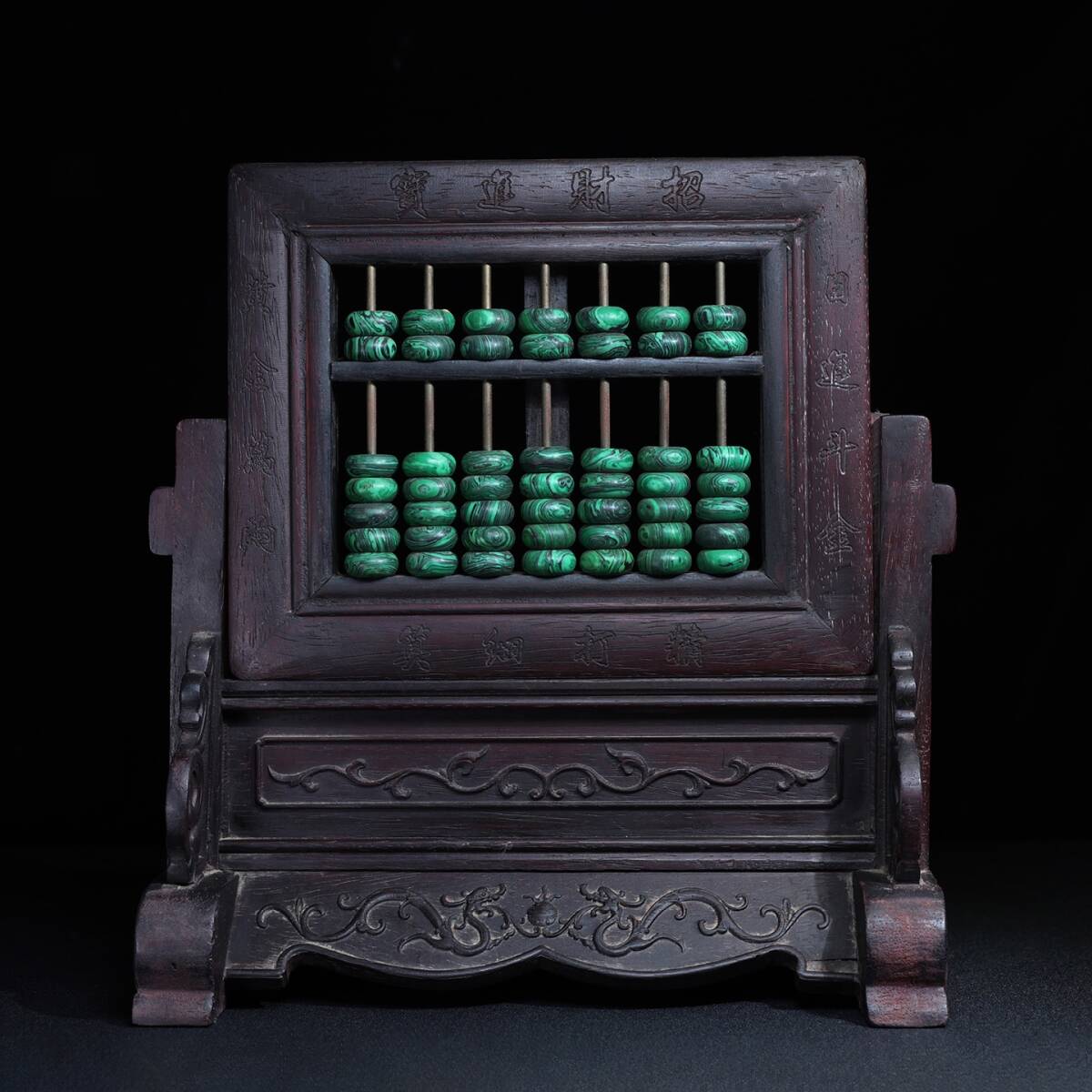 *珍品旧蔵* 清 紅木 彫刻【招財進寶 精打細算】算盤 屏風 置物 極細工 中国古玩 骨董品 古美味 H47