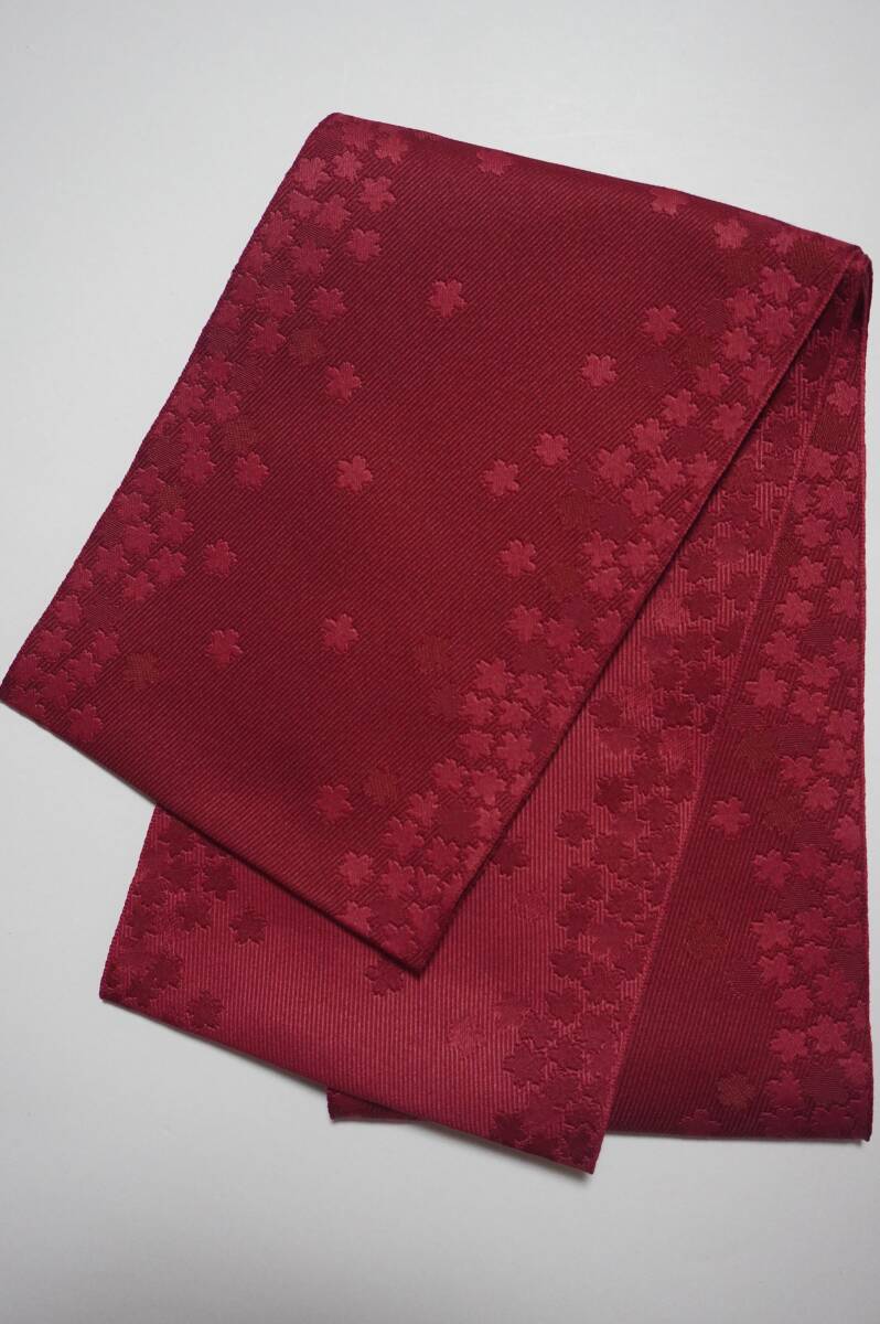 ネコポス送料込)新品即決!特価)柄浴衣帯no,19 臙脂色 桜小花 運動会、学芸会などにも