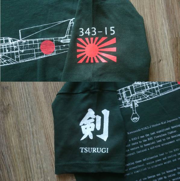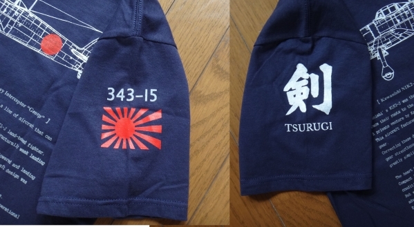 フロント面もしくはバックに紫電改をプリントし、片袖には海軍機とその上に343空の部隊マーク(尾翼のマーク)をプリントします。